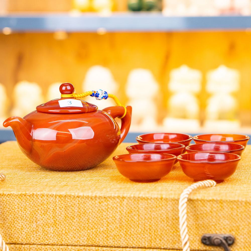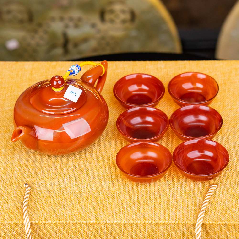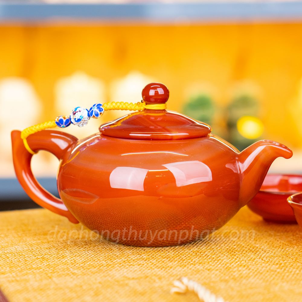Ấm chén mã não đỏ có tính thẩm mỹ vượt trội. Sử dụng để pha trà sẽ giúp tăng thêm hương vị của ấm trà. Đồng thời đá mã não đỏ tác dụng rất tốt cho sức khỏe. Cải thiện tâm trạng, tránh những suy nghĩ tiêu cực. Đồng thời đá mã não đỏ hỗ trợ cho hệ thống tim mạch, và hệ thần kinh.