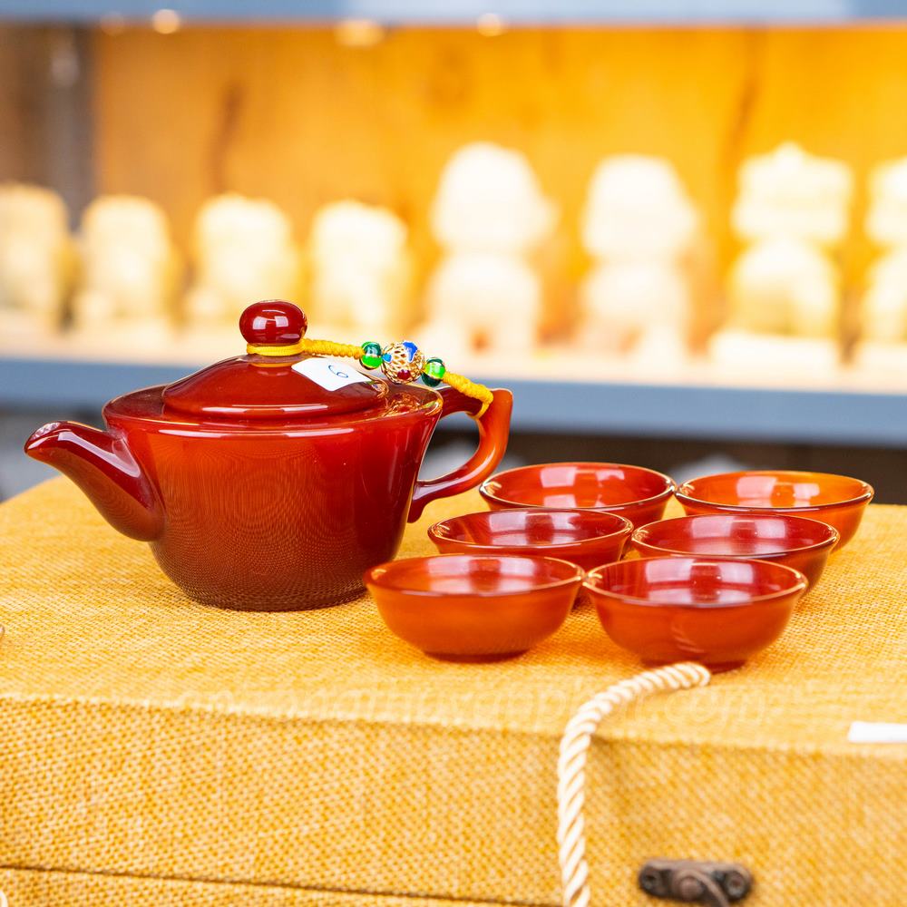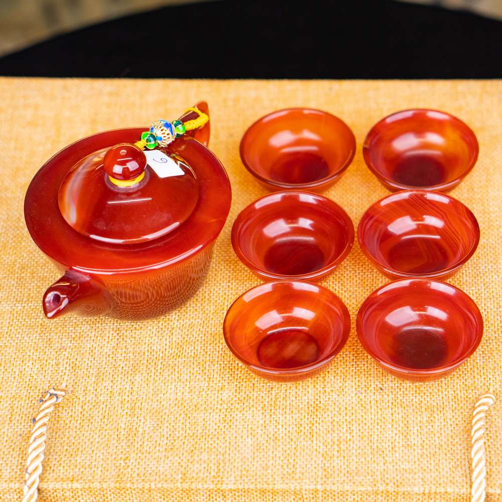 Ấm chén mã não đỏ có tính thẩm mỹ vượt trội thường được trưng bày tại không gian sống của mình không chỉ có tính thẩm mỹ cao mà vật phẩm phong thủy này còn đươc nhiều gia chủ sử dụng để thưởng trà giúp tăng độ ngon của trà.