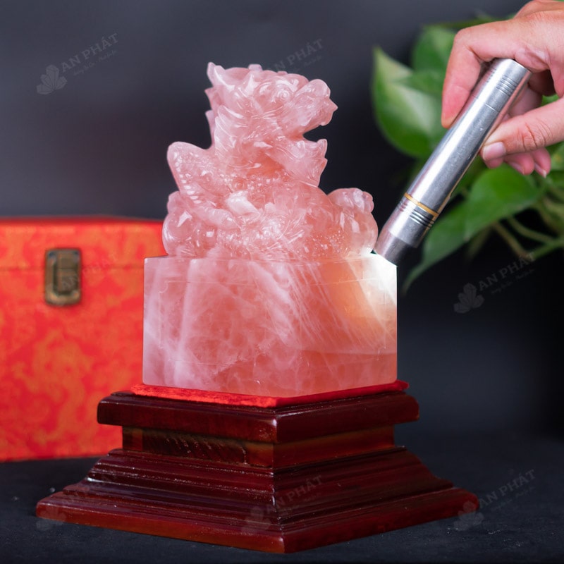 Ảnh cận cảnh ấn rồng đá thạch anh hồng