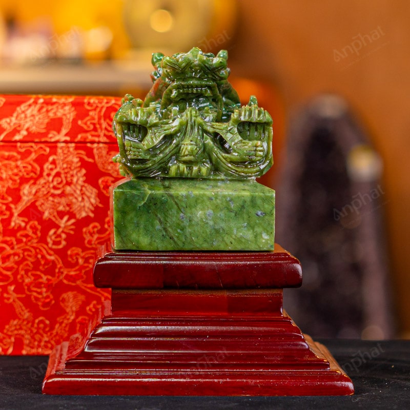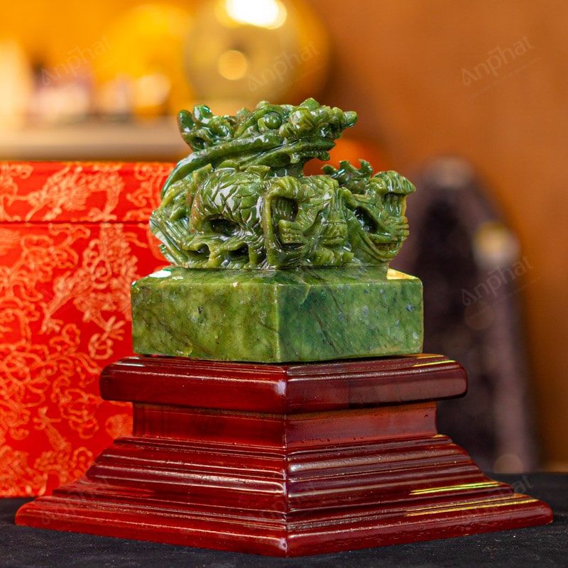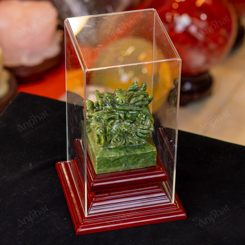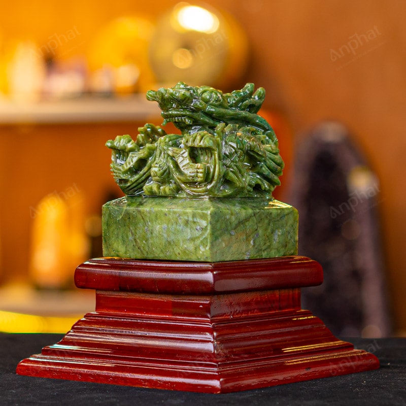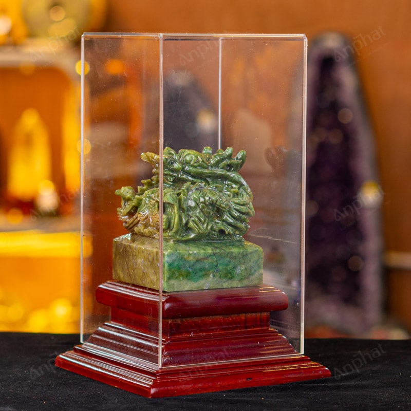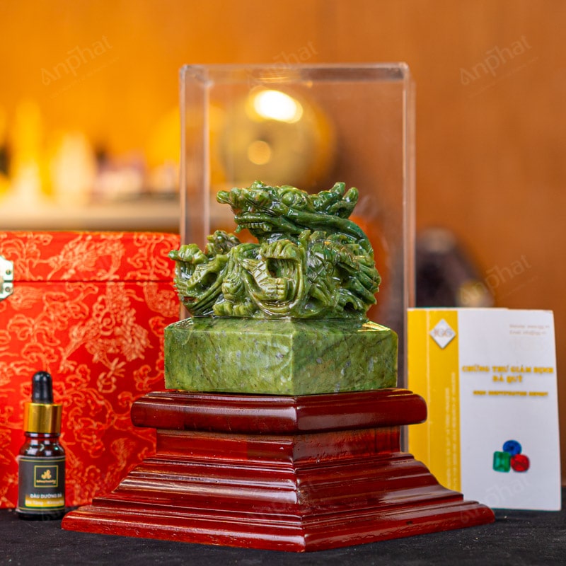 - Trọn bộ sản phẩm bao gồm: Ấn rồng + đế gỗ + hộp meka trong suốt + hộp đựng sang trọng + túi giấy sang trọng + dầu dưỡng đá + thiệp + giấy kiểm định chất lượng đá