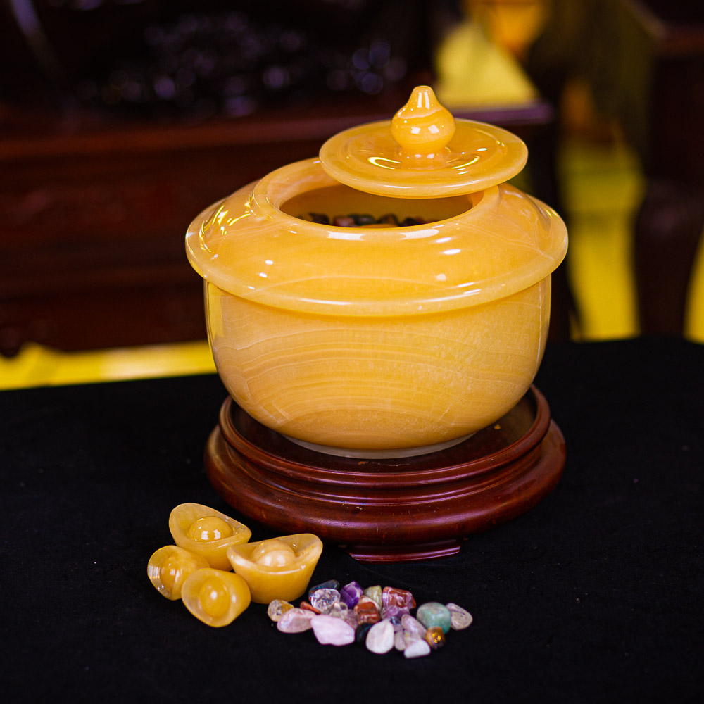 Sản phẩm có các đường vân tự nhiên, có độ thấu quang cao. Được thiết kế có nắp rời đậy sang trọng, bát tụ nguyên khối được chế tác công phu tỉ mỉ mang đến tay mọi người sản phẩm đẹp và sang trọng nhất. Đây là biểu tượng của sự thông minh và tài lộc, sản phẩm phù hợp với nhiều đối tượng sử dụng cũng như các thức bài trí.
