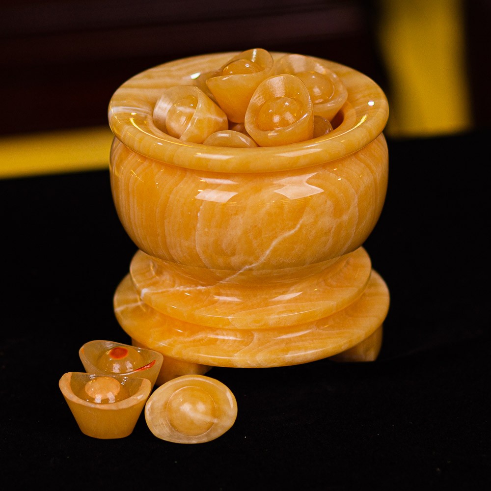 Mẫu Bát Tụ Bảo Phong Thủ tại Đá Phong Thủy An Phát được làm từ chất liệu đá ngọc Hoàng Long tự nhiên 100%. Bát Tụ Bảo này tại An Phát có màu vàng tượng trưng cho phú quý và tài lộc.