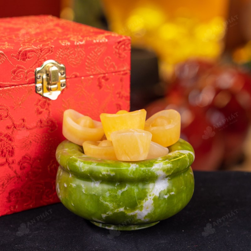 - Trọn bộ sản phẩm bao gồm: Bát tụ bảo + hộp đựng sang trọng + túi giấy sang trọng + dầu dưỡng đá + thiệp + giấy kiểm định chất lượng đá
