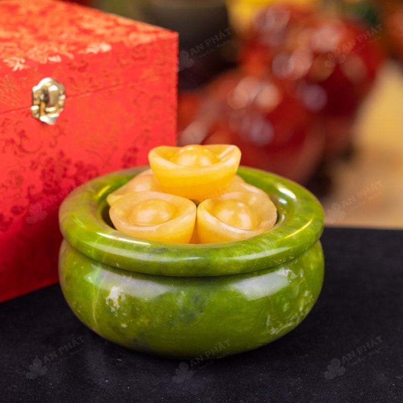 - Trọn bộ sản phẩm bao gồm: Bát tụ bảo + hộp đựng sang trọng + túi giấy sang trọng + dầu dưỡng đá + thiệp + giấy kiểm định chất lượng đá
