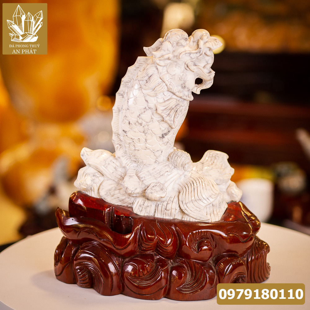 Ý nghĩa phong thủy Cá Chép Hoá Rồng Ngọc Howlite Quý Tự Nhiên M1545
