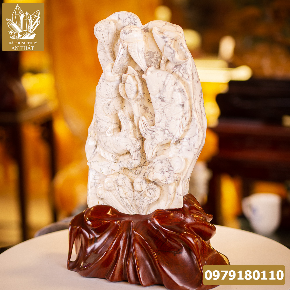 Mua Song Ngư Nhả Ngọc Đá Howlite M1564 chất lượng uy tín tại Đá Phong Thủy An Phát
