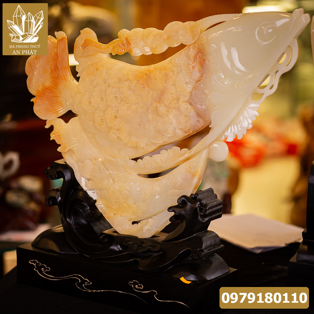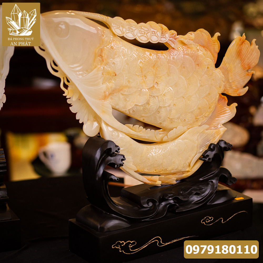 Ý nghĩa phong thủy Cá chép hóa rồng ngọc Onyx M22991