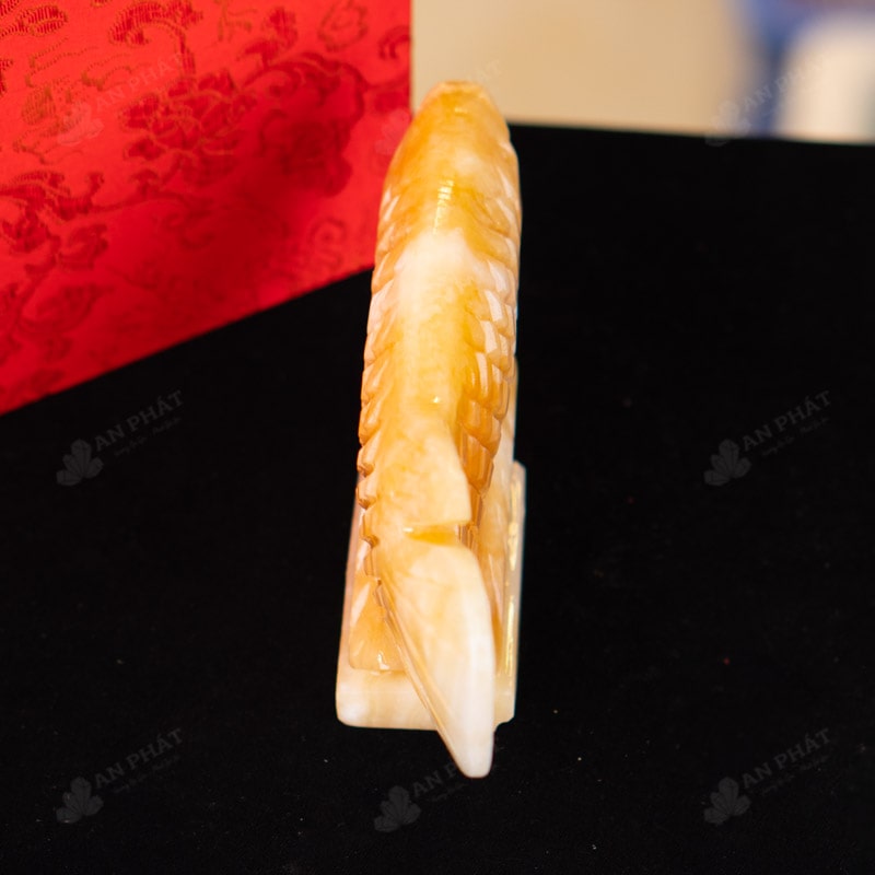 - Trọn bộ sản phẩm bao gồm: Cá rồng + hộp nhung sang trọng + túi giấy đựng sang trọng + dầu dưỡng đá + thiệp + giấy kiểm định chất lượng đá