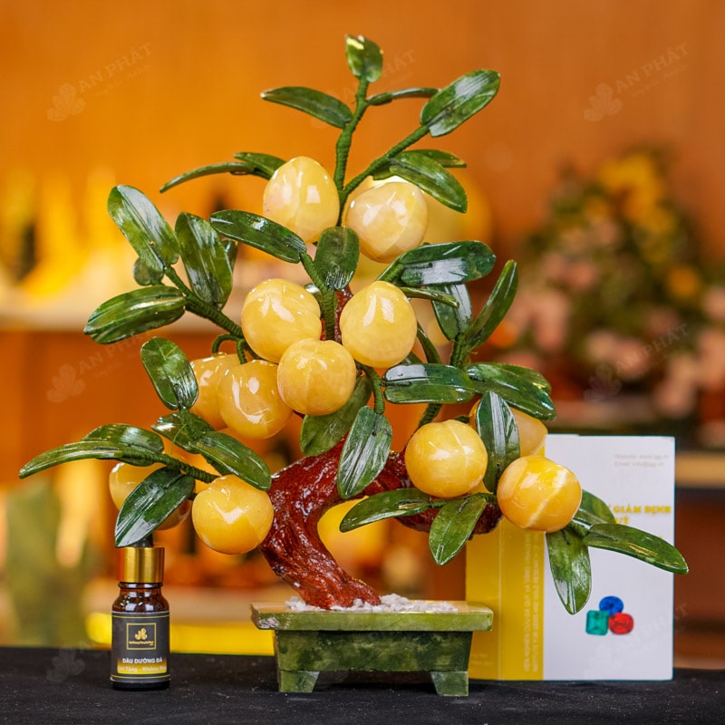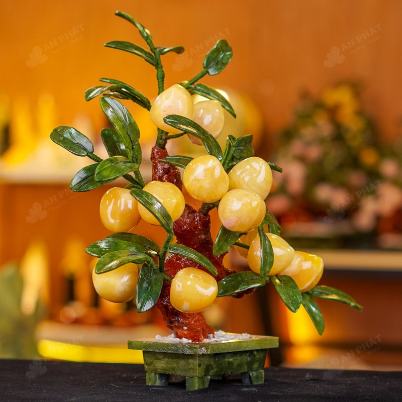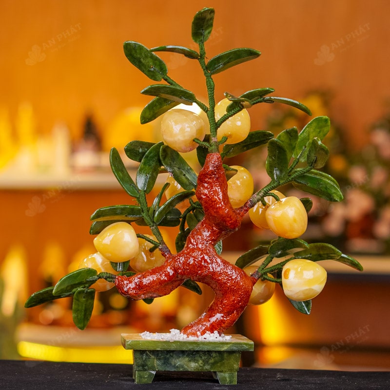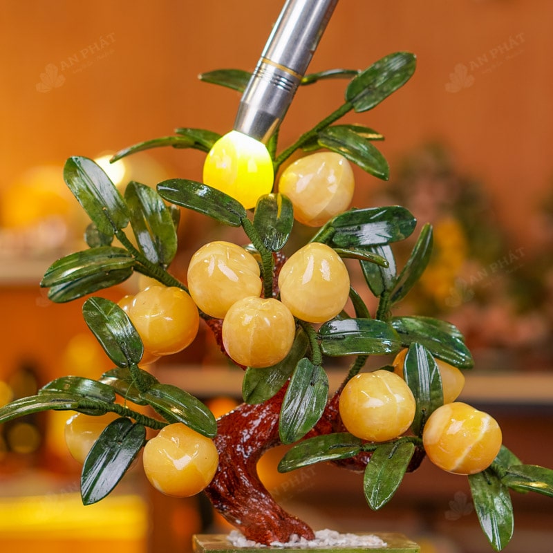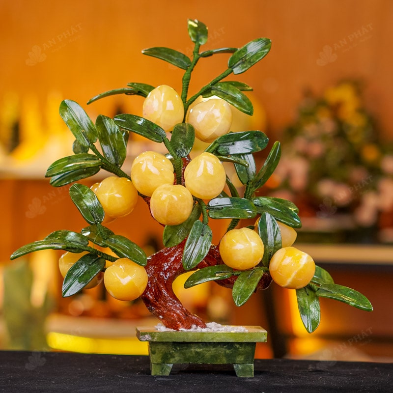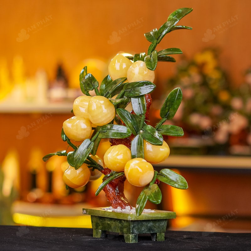 - Chất liệu: Lá - Serpentine, Quả - Ngọc Hoàng Long