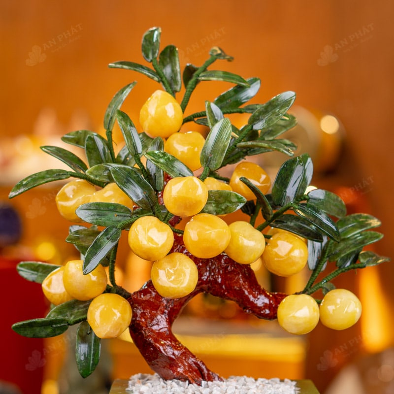 - Chất liệu: Lá - Serpentine, Quả - Ngọc Hoàng Long