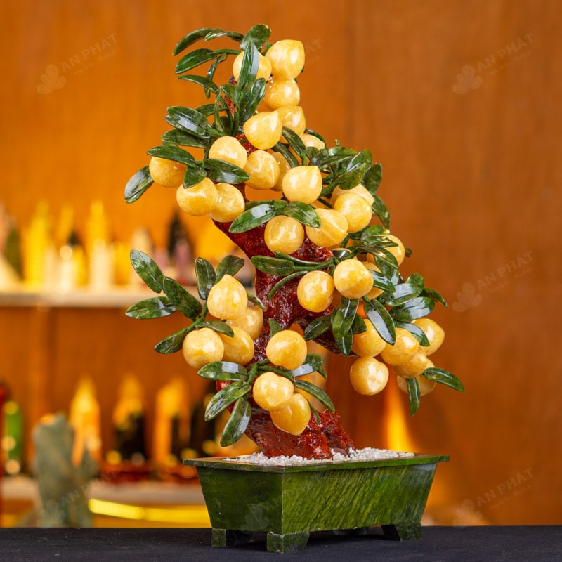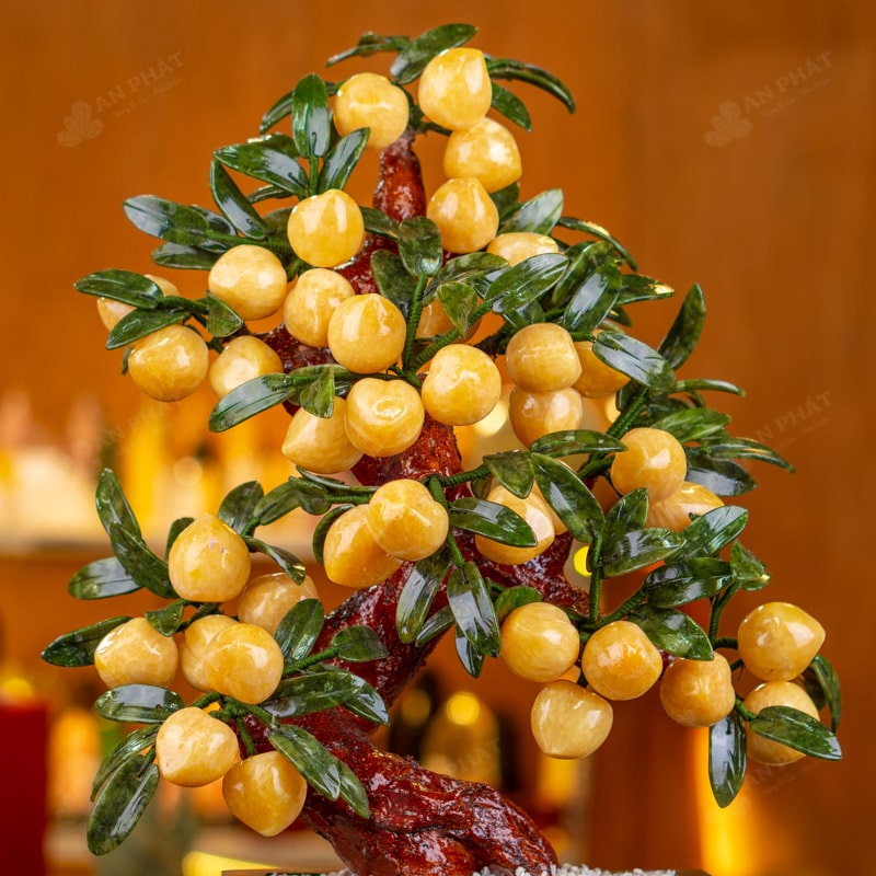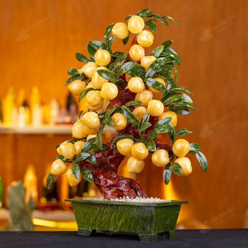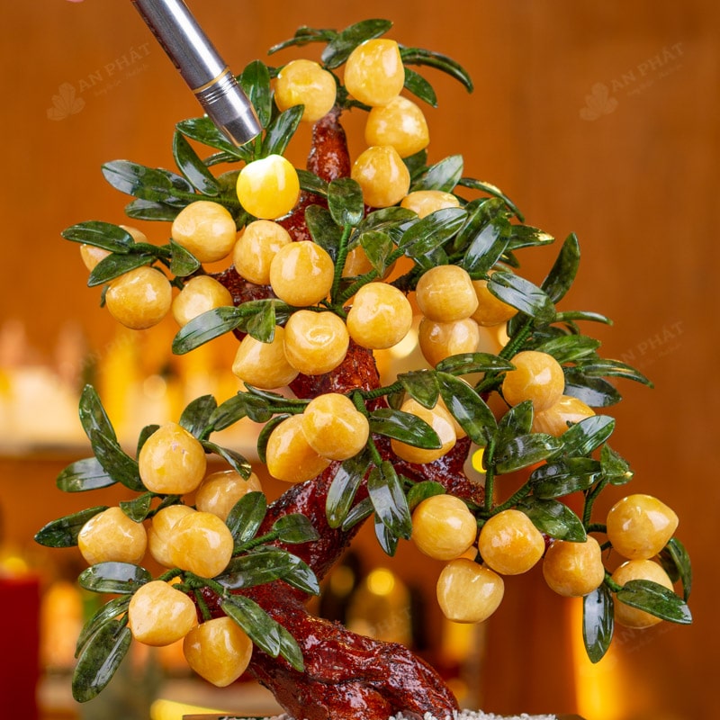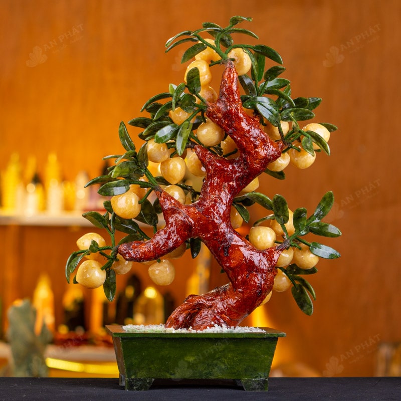 - Chất liệu: Lá - Serpentine, Quả - Ngọc Hoàng Long