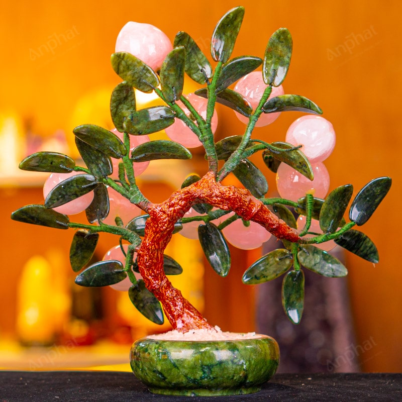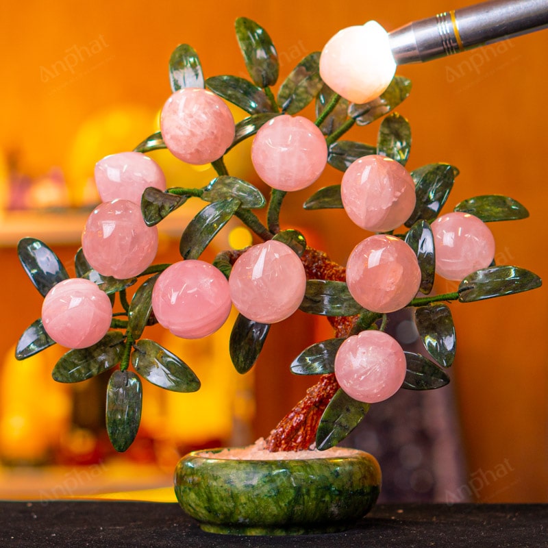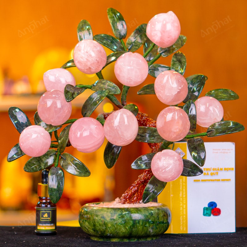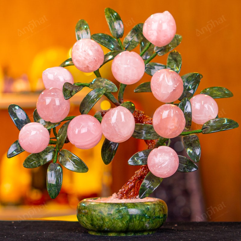 - Chất liệu: Lá - Serpentine, Quả - Thạch Anh Hồng