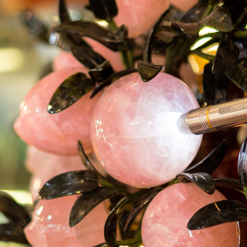 - Chất liệu: Lá - Serpentine, Quả - Thạch Anh Hồng