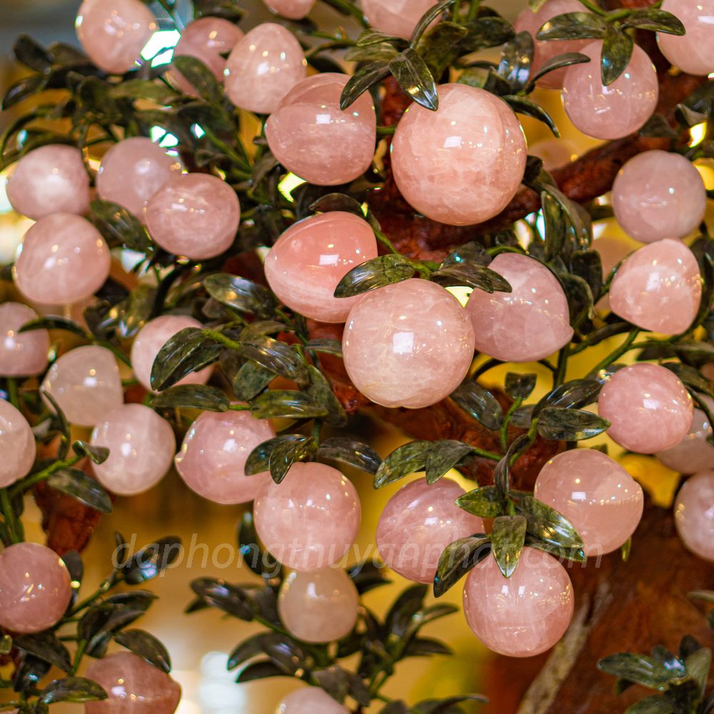 Ý nghĩa của cây đào đá thạch anh phong thủy Thạch Anh Hồng 68 Quả