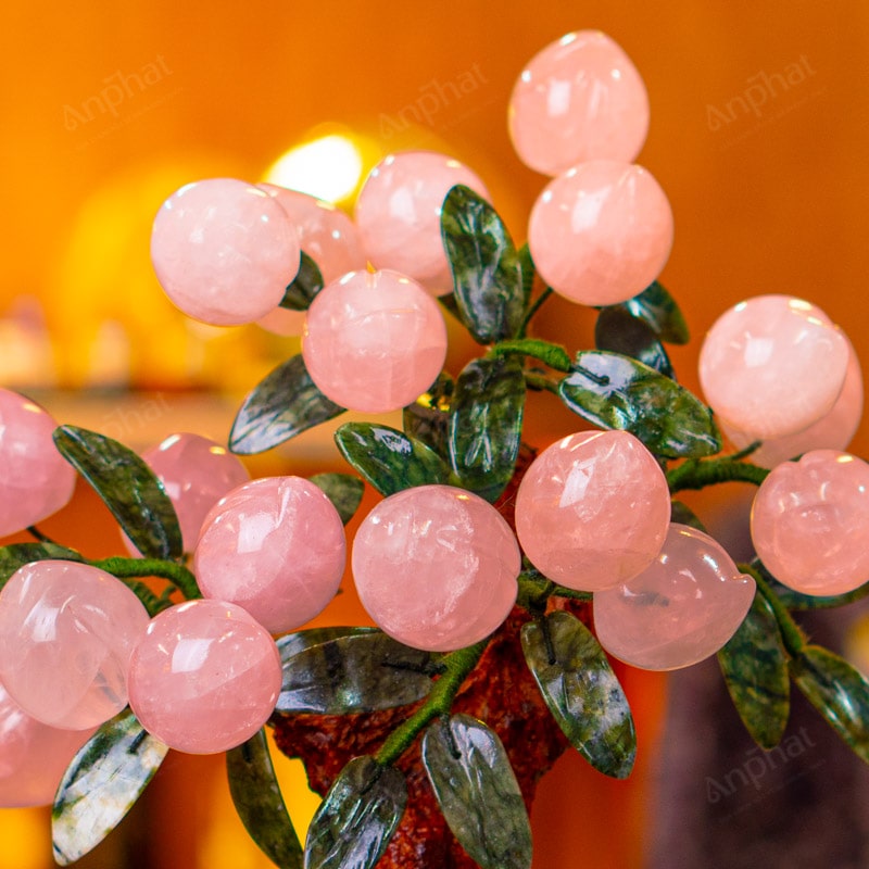 - Chất liệu: Lá - Serpentine, Quả - Thạch Anh Hồng