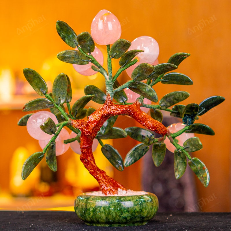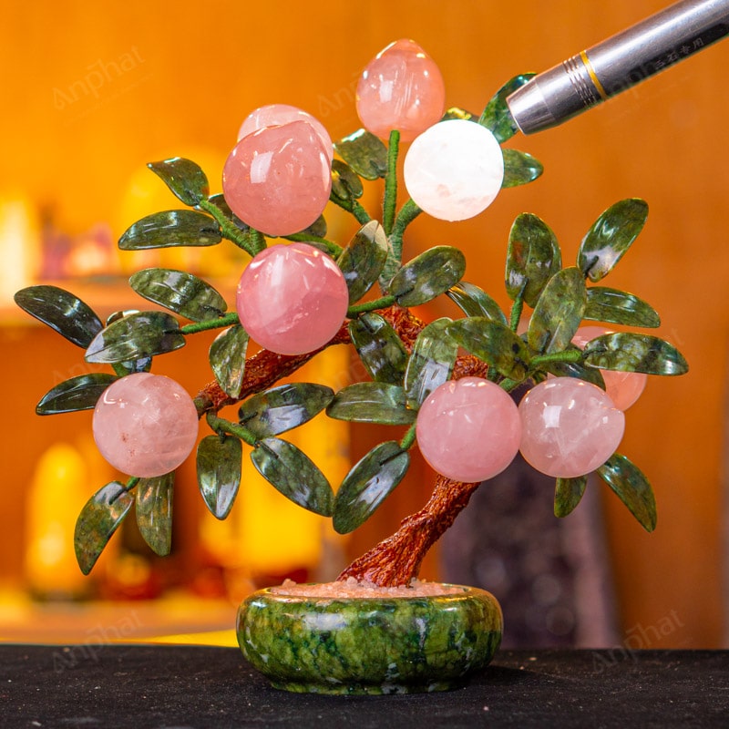 - Chất liệu: Lá - Serpentine, Quả - Thạch Anh Hồng