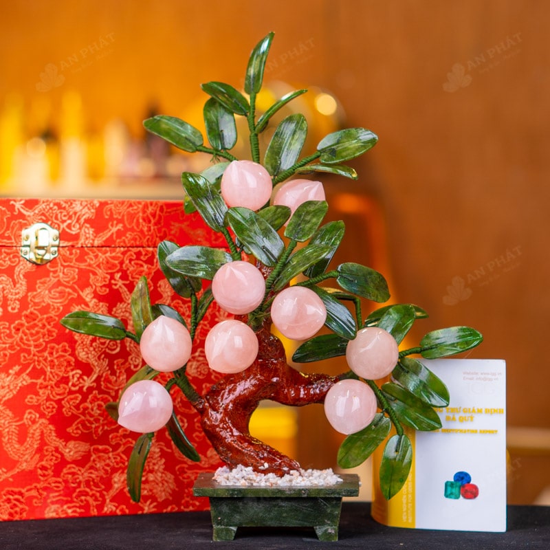 - Trọn bộ sản phẩm bao gồm: Cây đào đá + hộp đựng sang trọng + túi giấy sang trọng + dầu dưỡng đá + thiệp + giấy kiểm định chất lượng đá