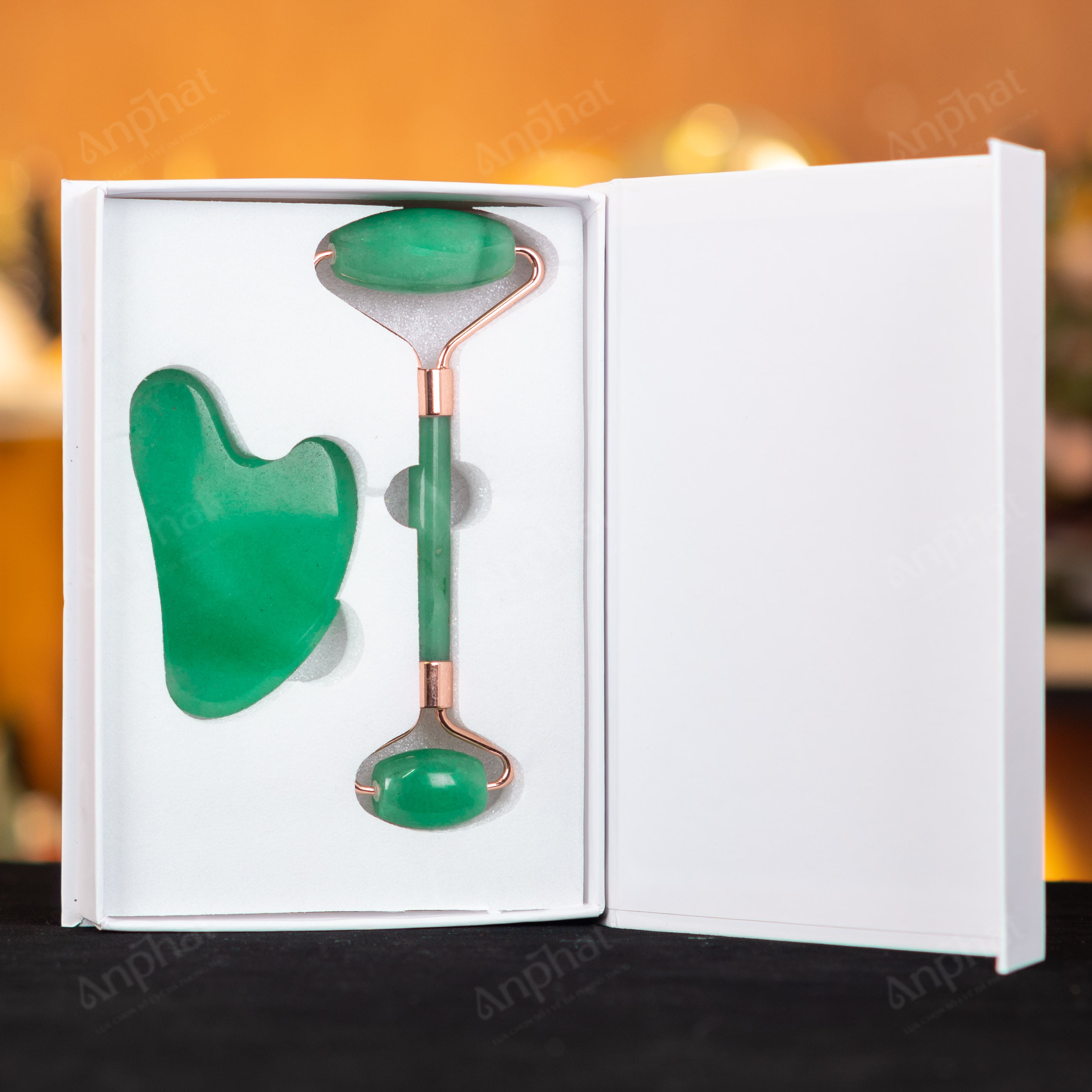- Trọn bộ sản phẩm bao gồm: Bộ cây lăn massagage + túi giấy sang trọng + thiệp + giấy kiểm định chất lượng đá