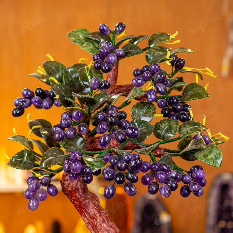 - Chất liệu: Lá - Serpentine, Quả - Thạch Anh Tím