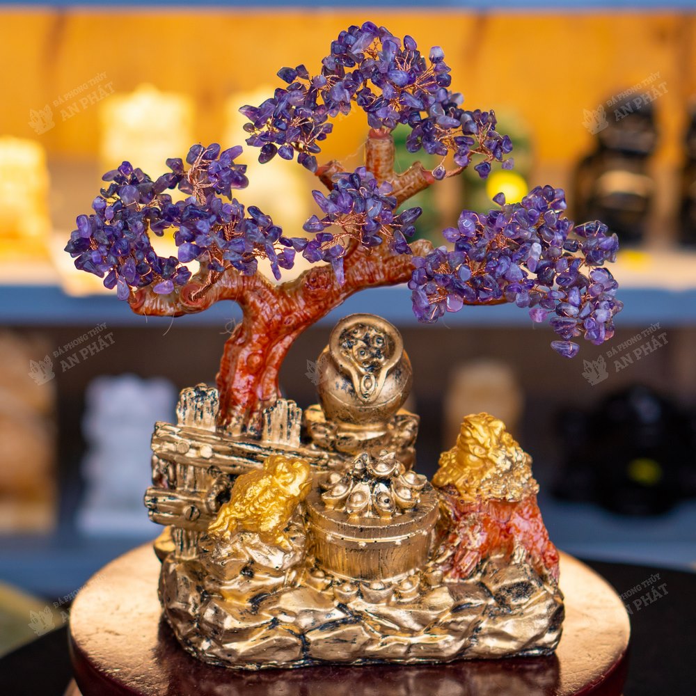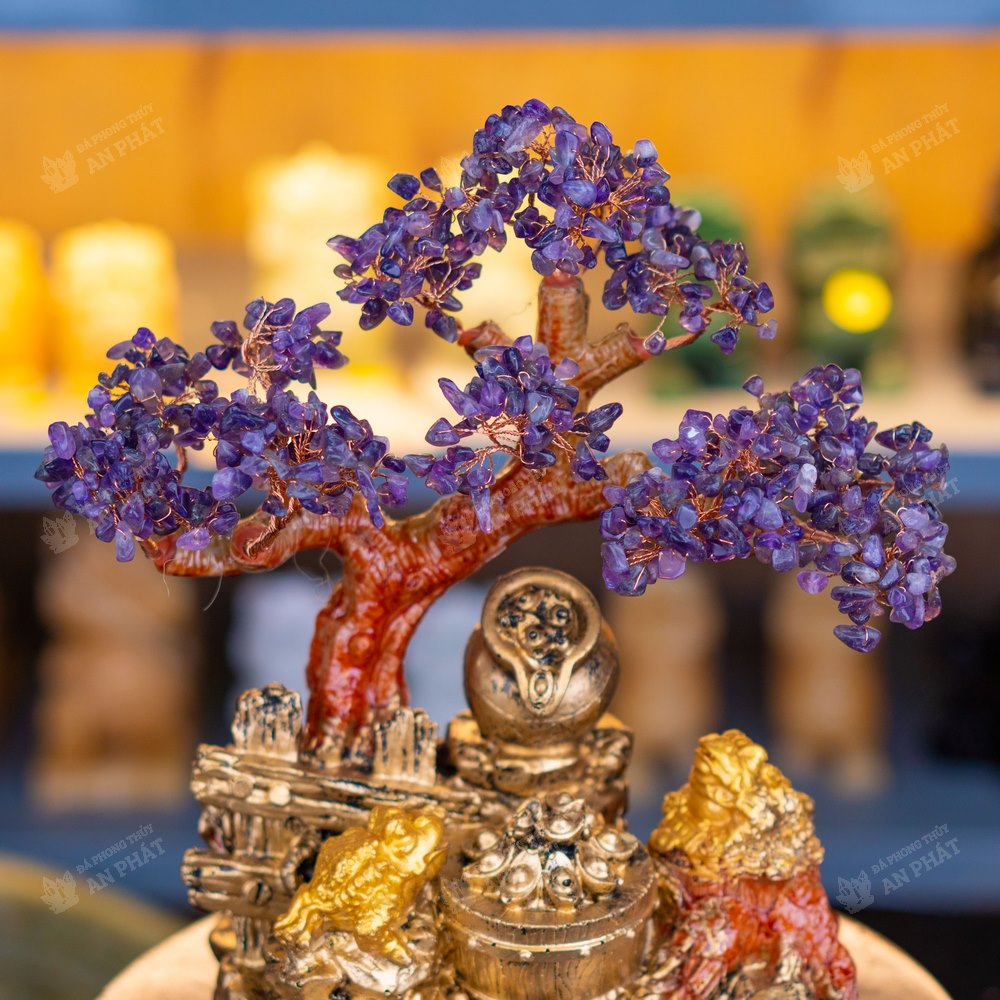 Alt: ý nghĩa cây tài lộc đá phong thủy thạch anh tím