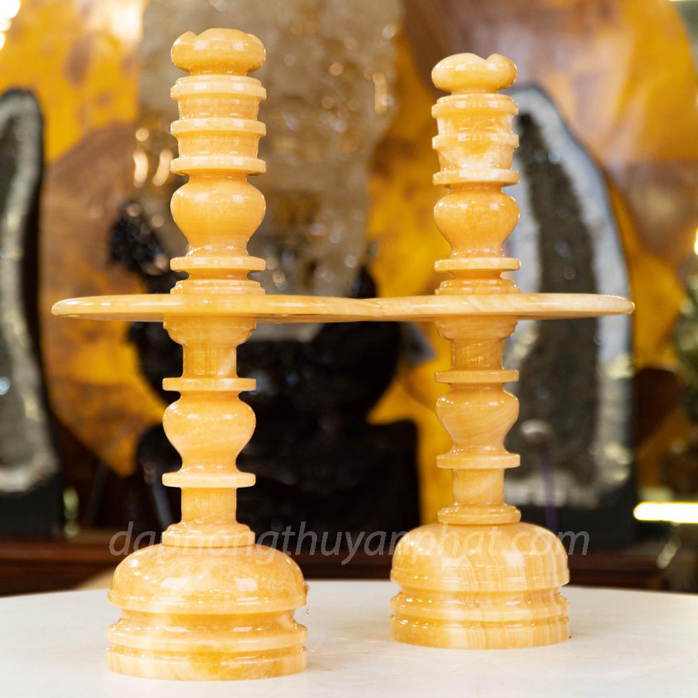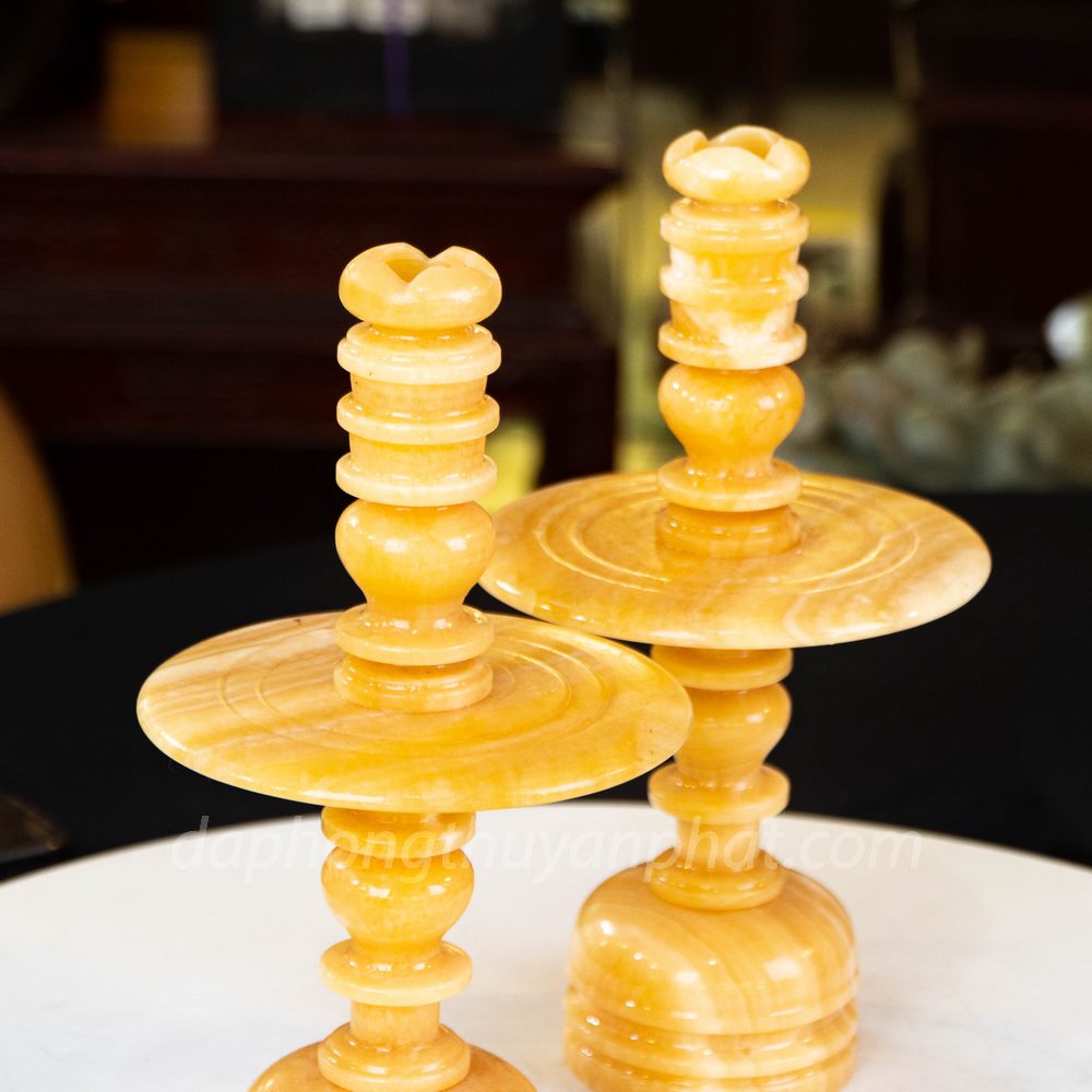 Chân nến ngọc Hoàng Long được sử dụng để cắm, cố định nến hay cốc nên trên bàn thờ gia tiên. Được bày trí cân xứng 2 bên trên bàn thờ với ý nghĩa âm dương hòa hợp. Đem đến nhiều tài lộc may mắn và bình an cho gia chủ.