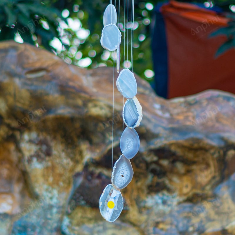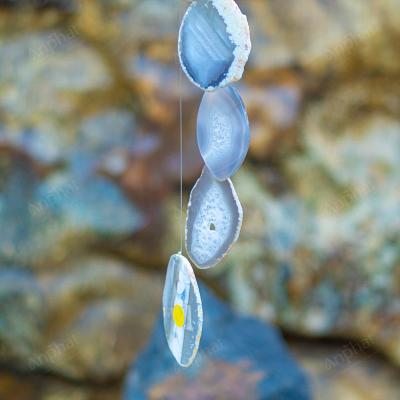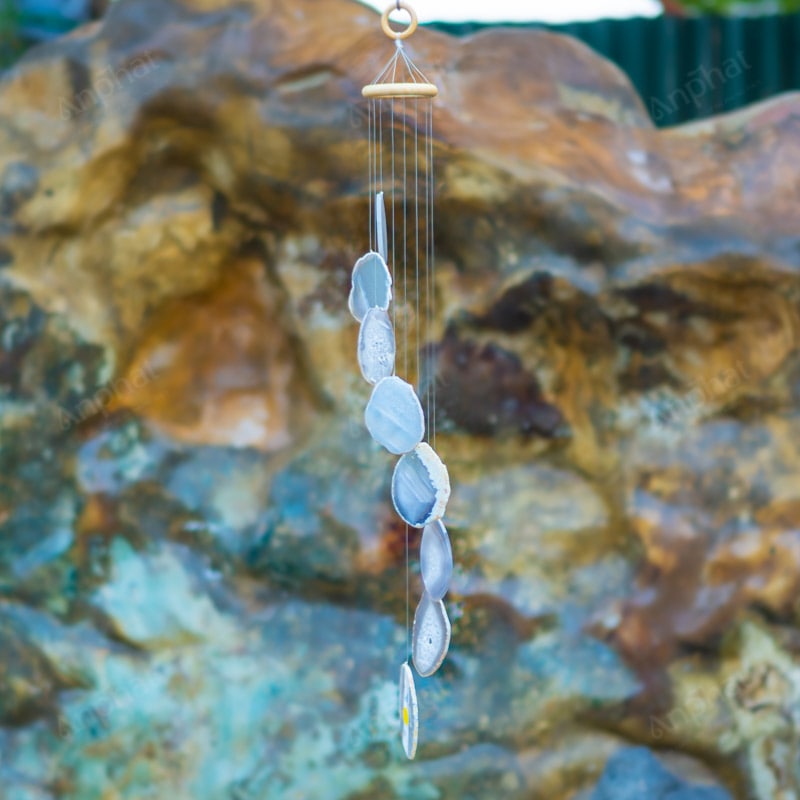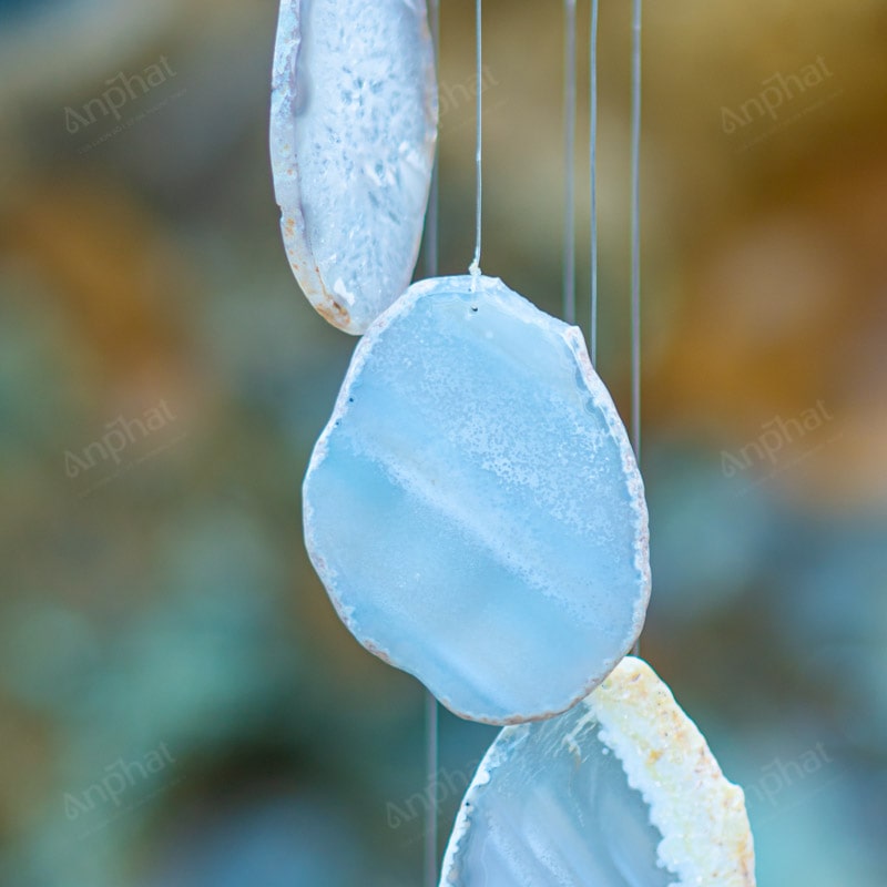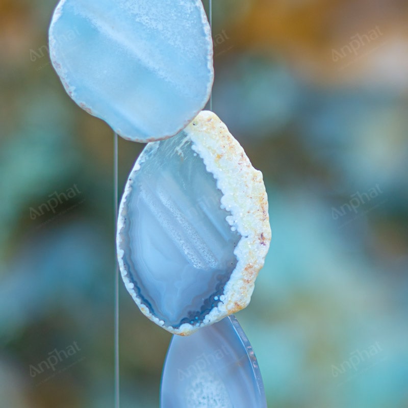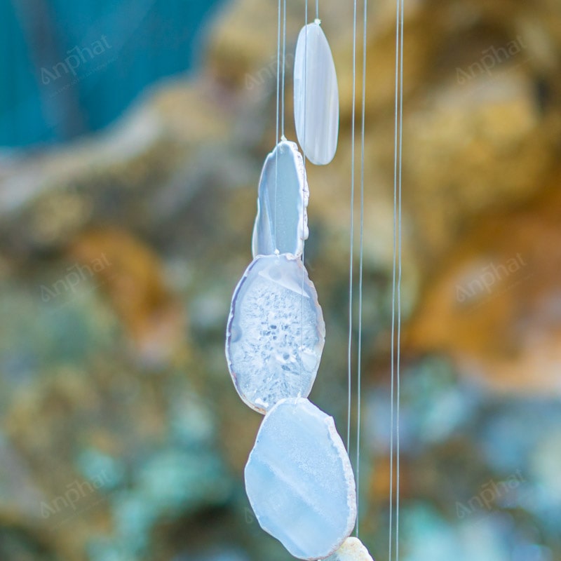 Ảnh cận cảnh chuông gió đá mã não trắng
