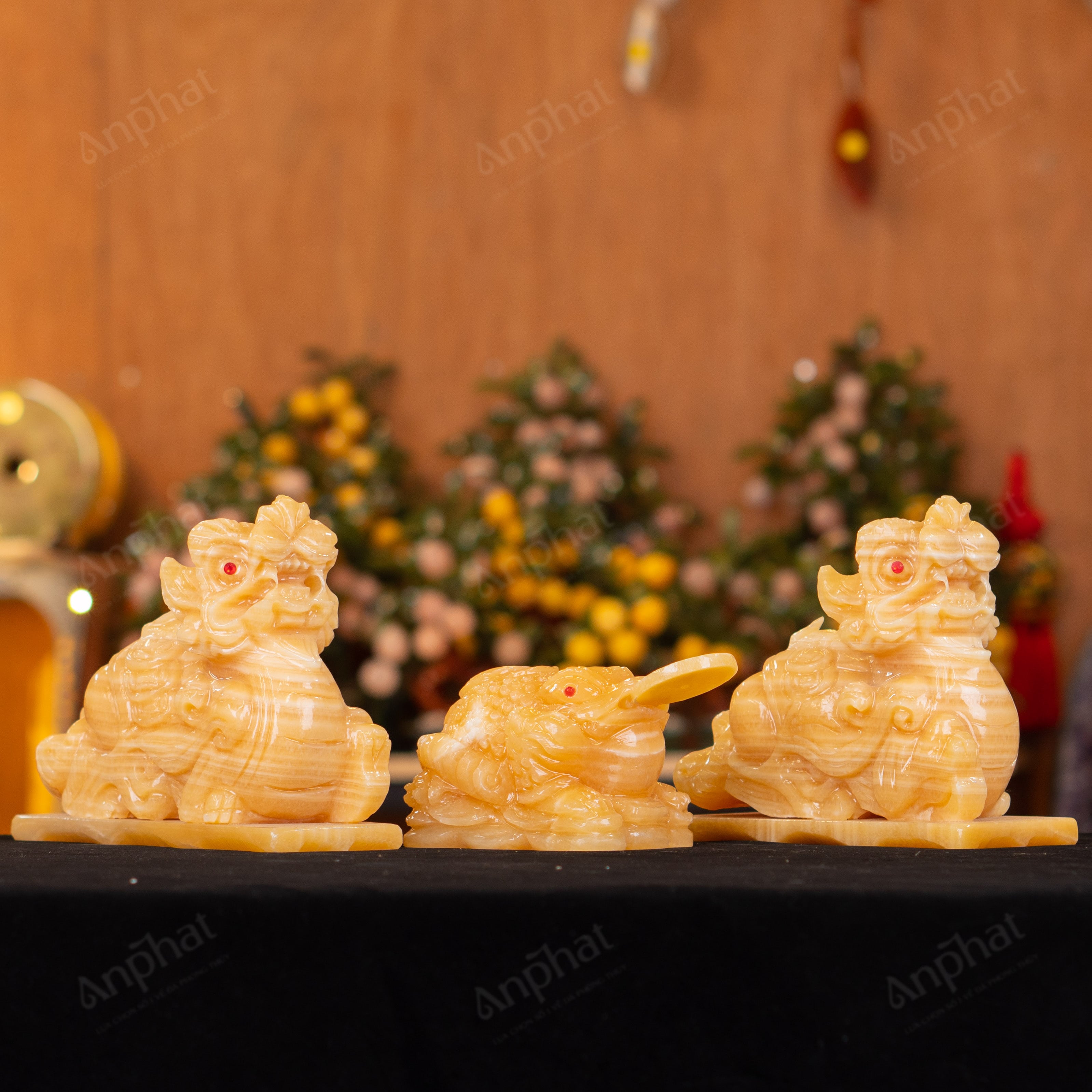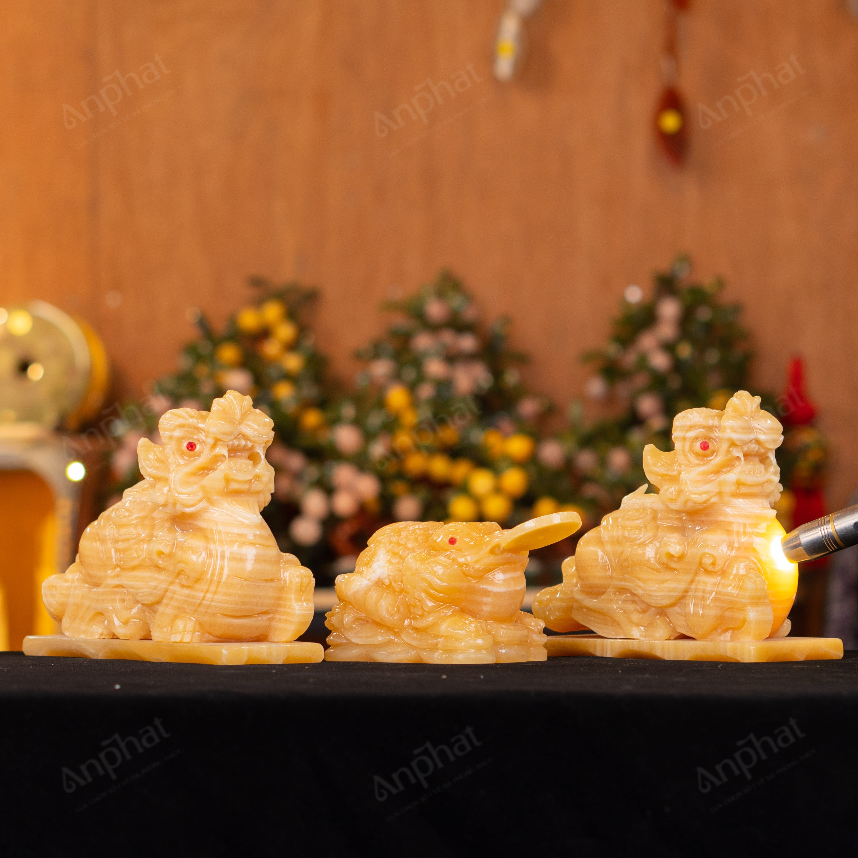 - Trọn bộ sản phẩm bao gồm: Combo linh vật + dầu dưỡng đá + thiệp + giấy kiểm định chất lượng đá + khăn thơm bao sái + giấy hướng dẫn trực tiếp an vị + khai quang tại chùa