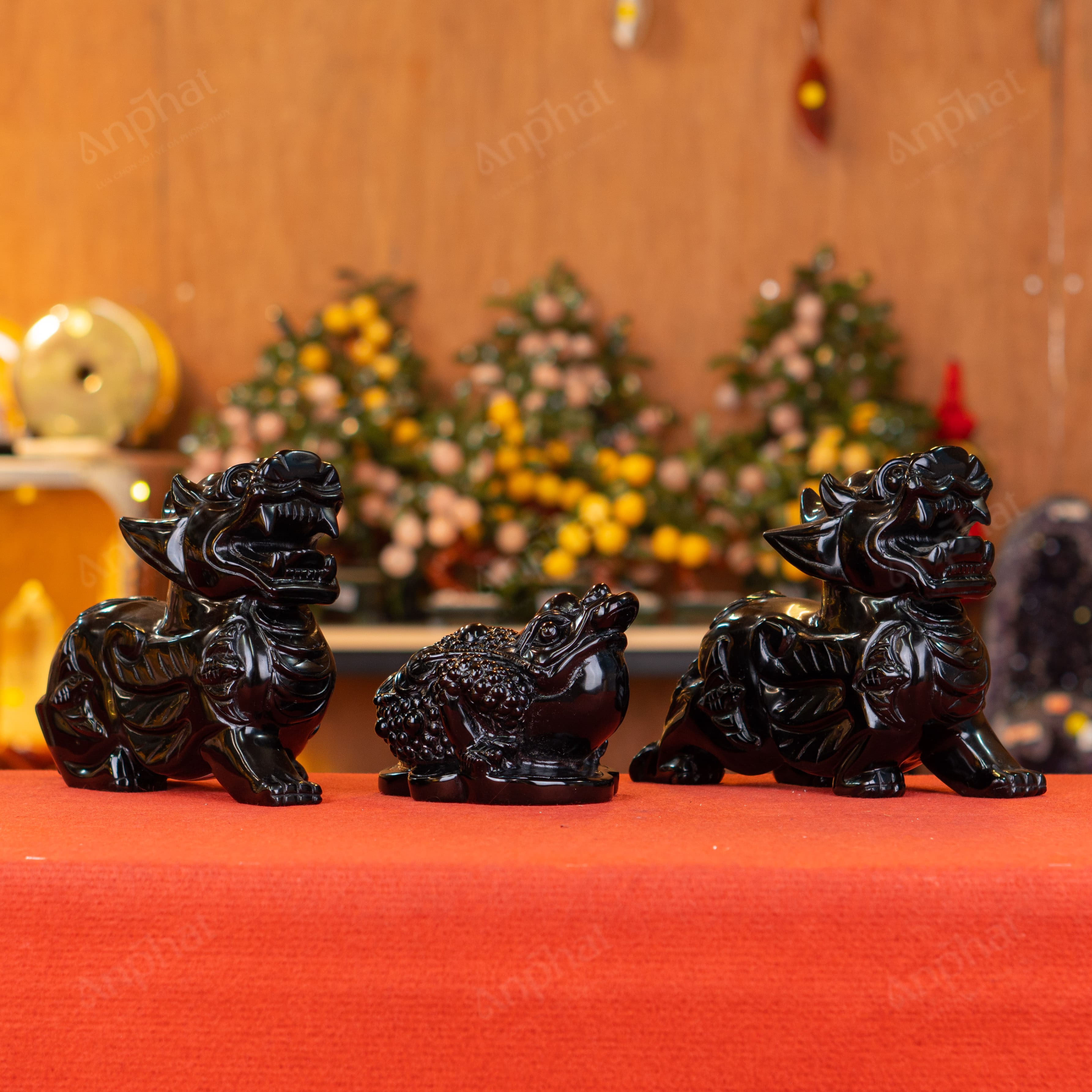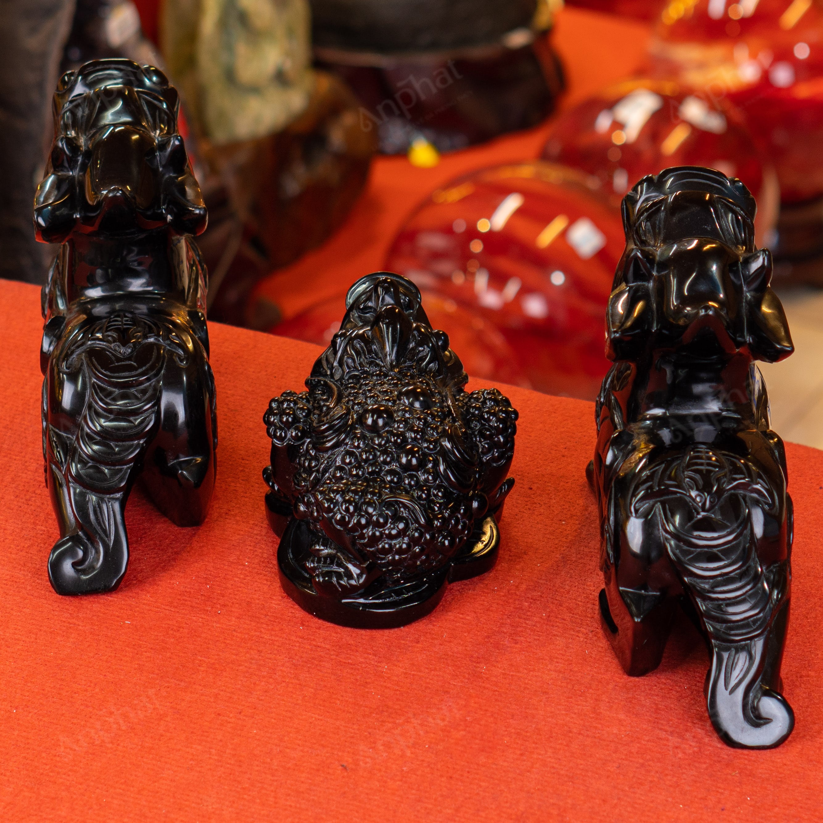 Ảnh cận cảnh combo Thiềm Thù - Tỳ Hưu obsidian đen