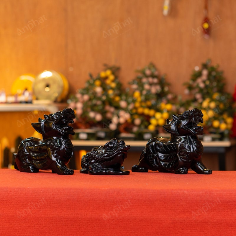Ảnh cận cảnh combo Thiềm Thù - Tỳ Hưu onyx đen