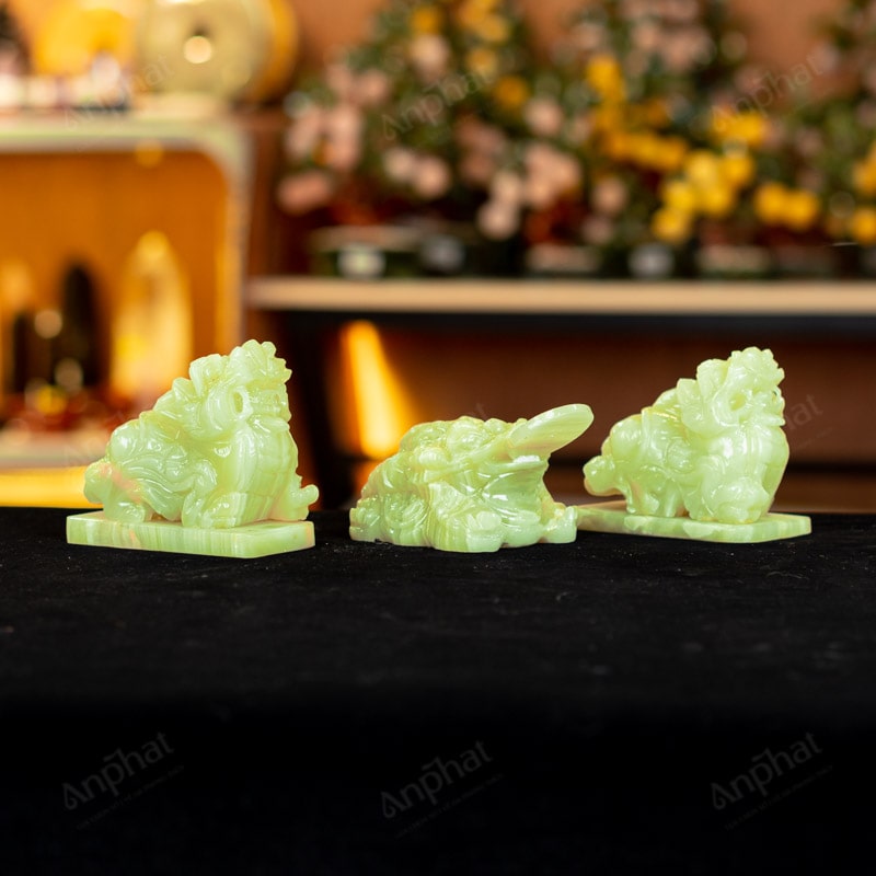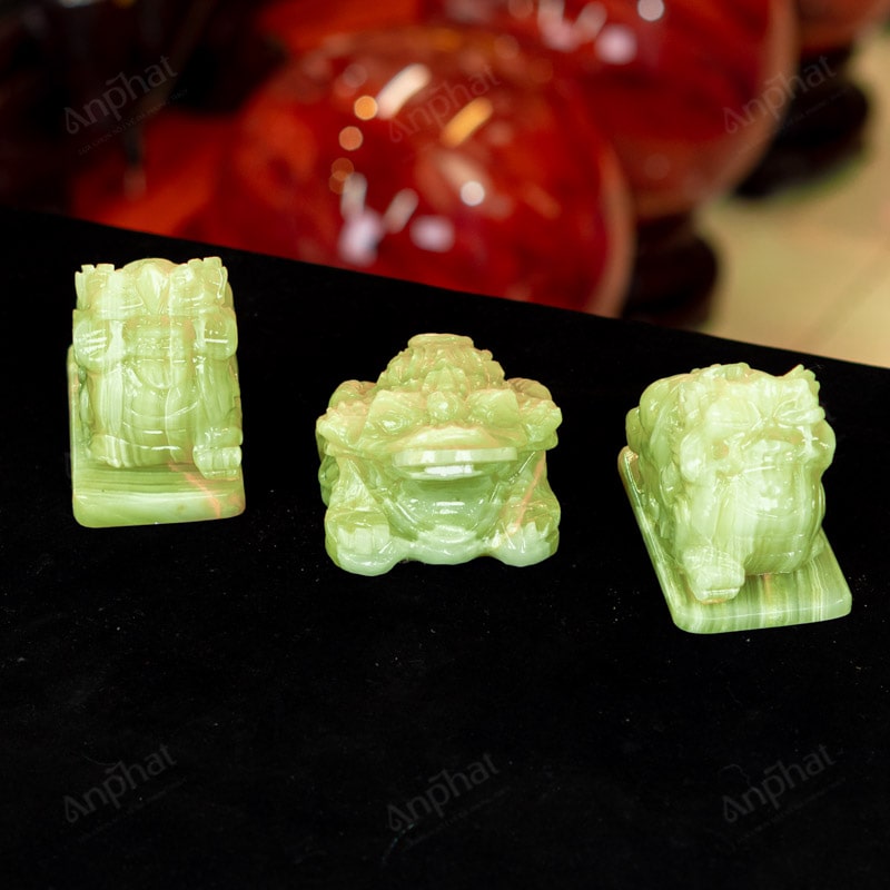 Ảnh cận cảnh combo Thiềm Thù - Tỳ Hưu onyx xanh
