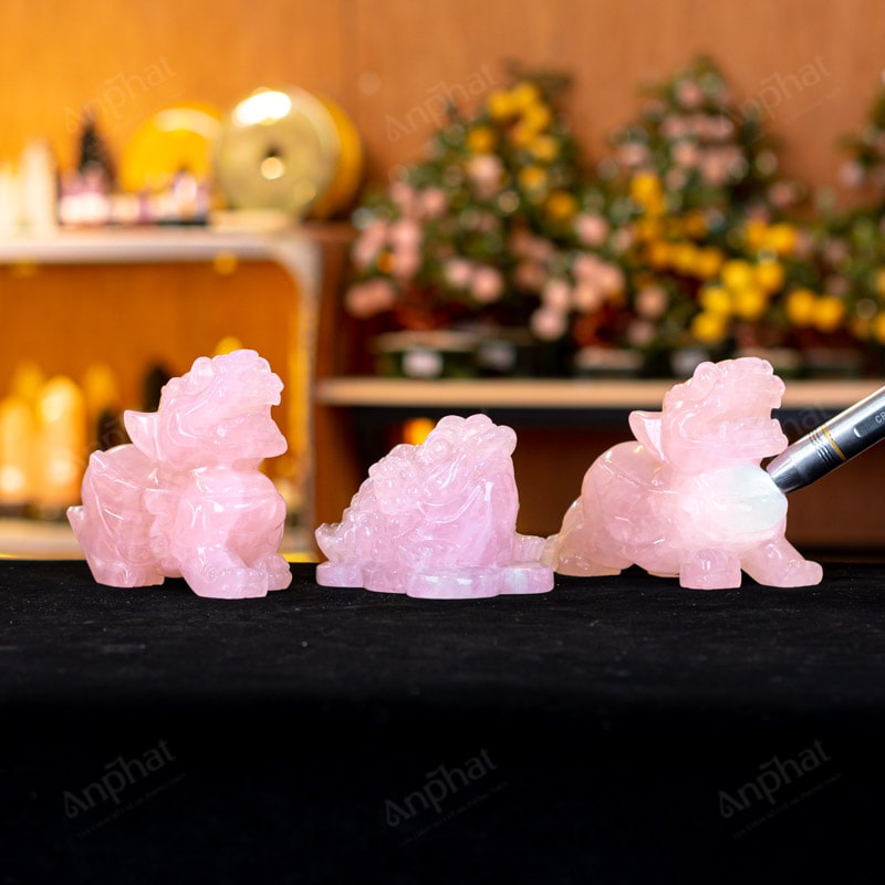 - Chất liệu: Đá Thạch Anh Hồng tự nhiên, nguyên khối