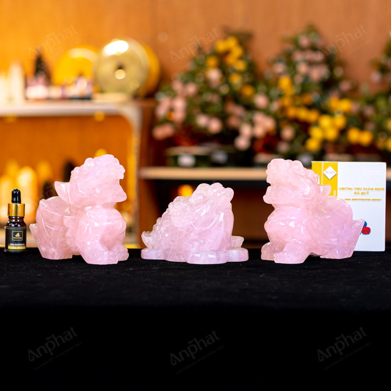 - Trọn bộ sản phẩm bao gồm: Combo linh vật + dầu dưỡng đá + thiệp + giấy kiểm định chất lượng đá + khăn thơm bao sái + giấy hướng dẫn trực tiếp an vị + khai quang tại chùa