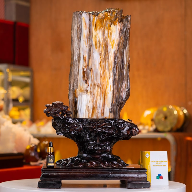 - Trọn bộ sản phẩm bao gồm: đá cảnh + đế gỗ + dầu dưỡng đá + giấy kiểm định chất lượng đá