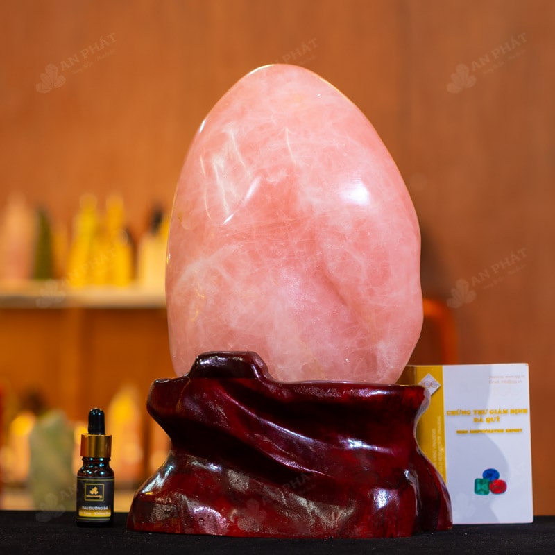- Chất liệu: Đá Thạch Anh Hồng tự nhiên, nguyên khối