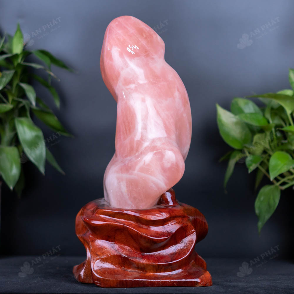 - Chất liệu: Đá Thạch Anh Hồng tự nhiên, nguyên khối