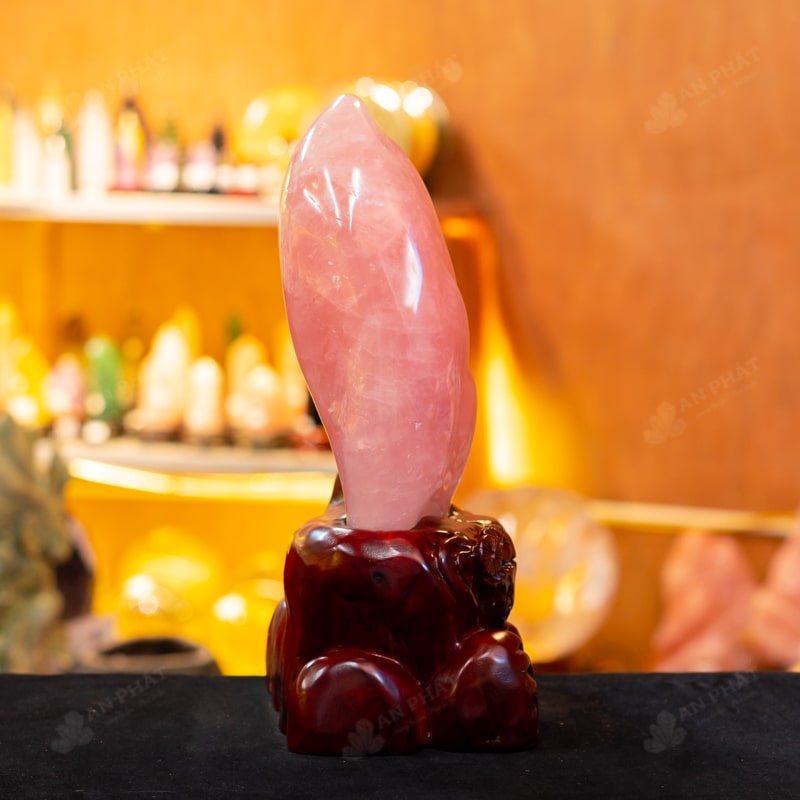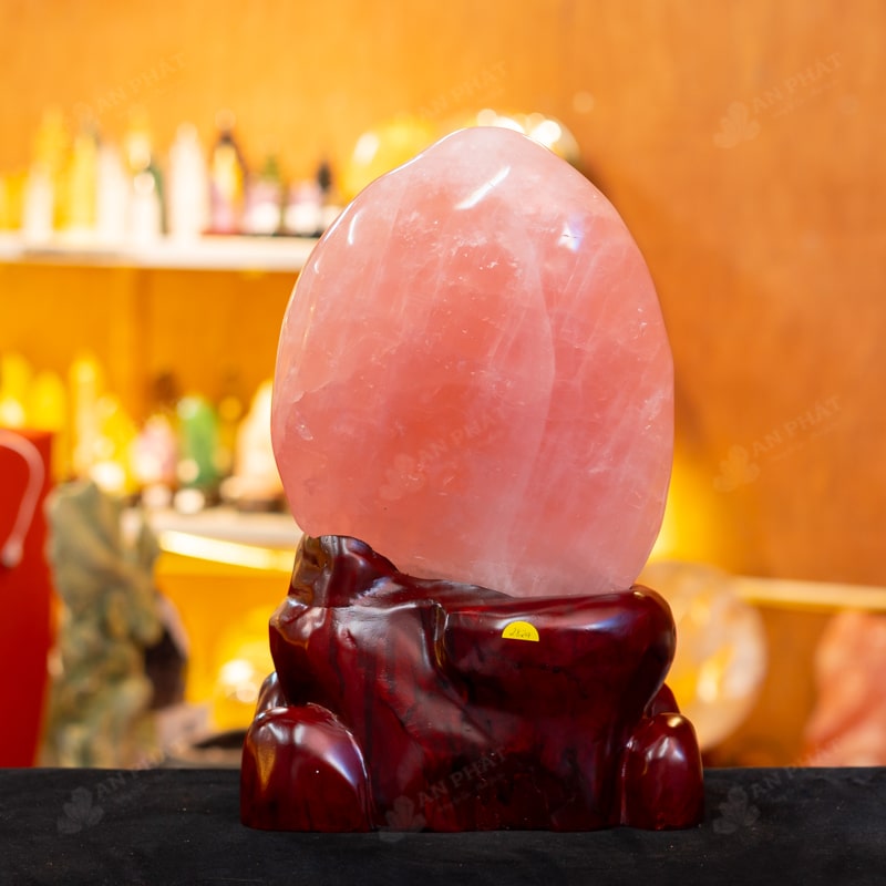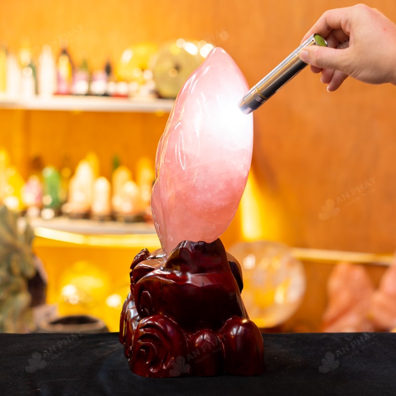 - Chất liệu: Đá Thạch Anh Hồng tự nhiên, nguyên khối