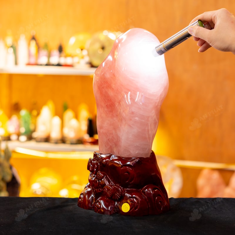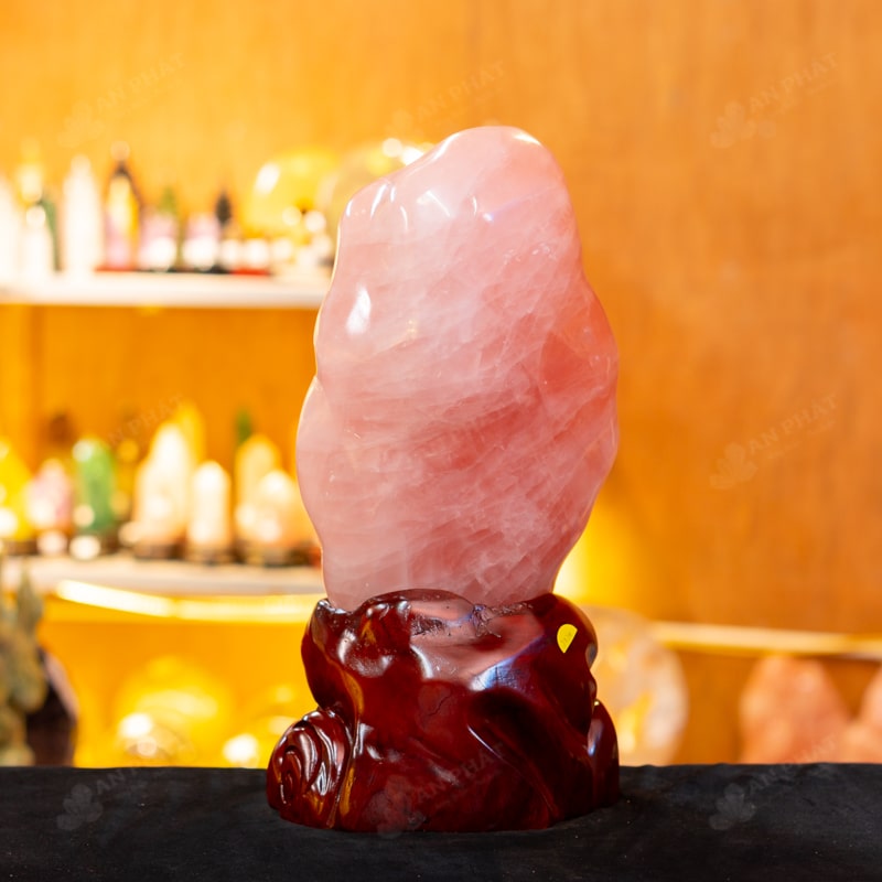 - Chất liệu: Đá Thạch Anh Hồng tự nhiên, nguyên khối