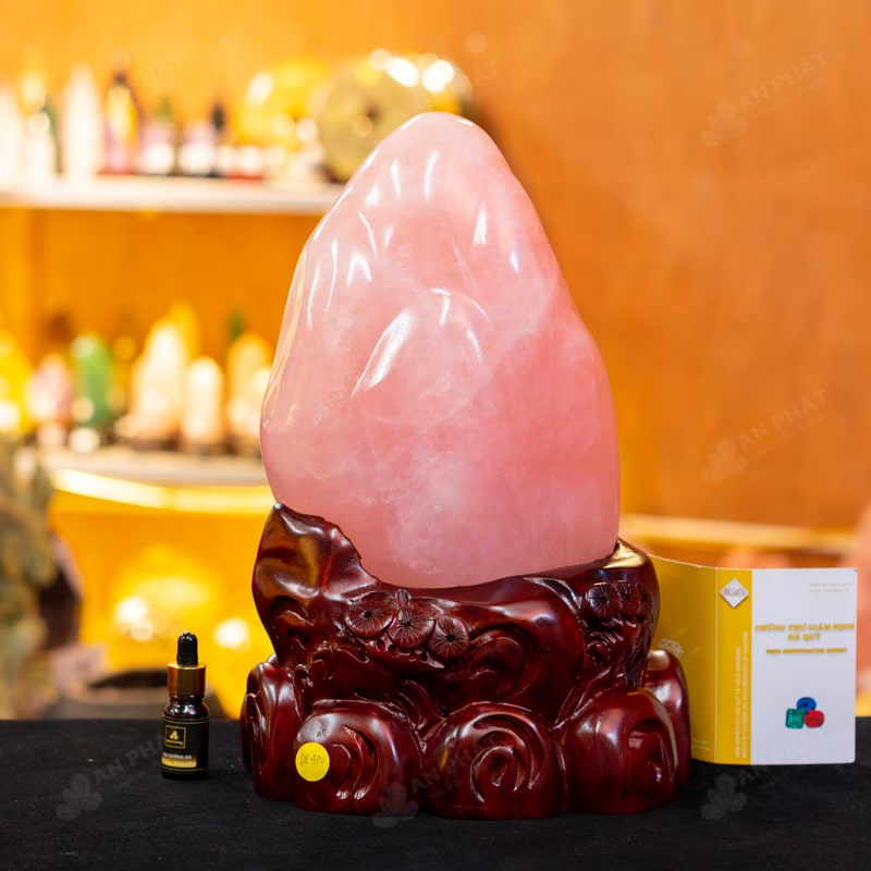 - Chất liệu: Đá Thạch Anh Hồng tự nhiên, nguyên khối
