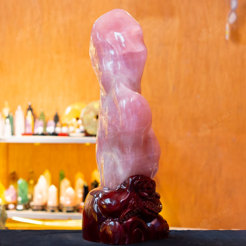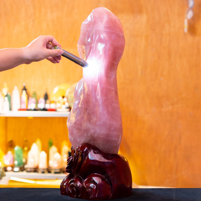 - Chất liệu: Đá Thạch Anh Hồng tự nhiên, nguyên khối