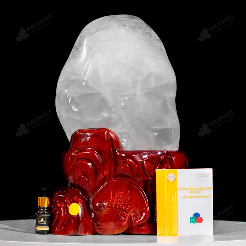 - Trọn bộ sản phẩm bao gồm: đá cảnh + đế gỗ + dầu dưỡng đá + thiệp tặng quà + giấy kiểm định chất lượng đá