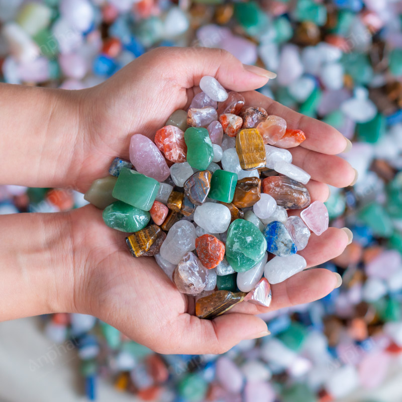 Đá Thạch Anh Vụn Ngũ Sắc Bóng (Đặc Biệt) mang năng lượng và chất lượng cao lên đến 20000 bovis bởi toàn bộ đều sử dụng đá thạch anh tự nhiên 100% không nhuộm màu. Đá Thạch Anh Vụn Ngũ Sắc Bóng (Đặc Biệt) sử dụng lượng lớn các loại đá có giá trị kinh tế cao: đá lapit xanh, thạch anh trắng, xanh, tím, hồng,... với tỷ lệ trộn đều nhau 1:1.