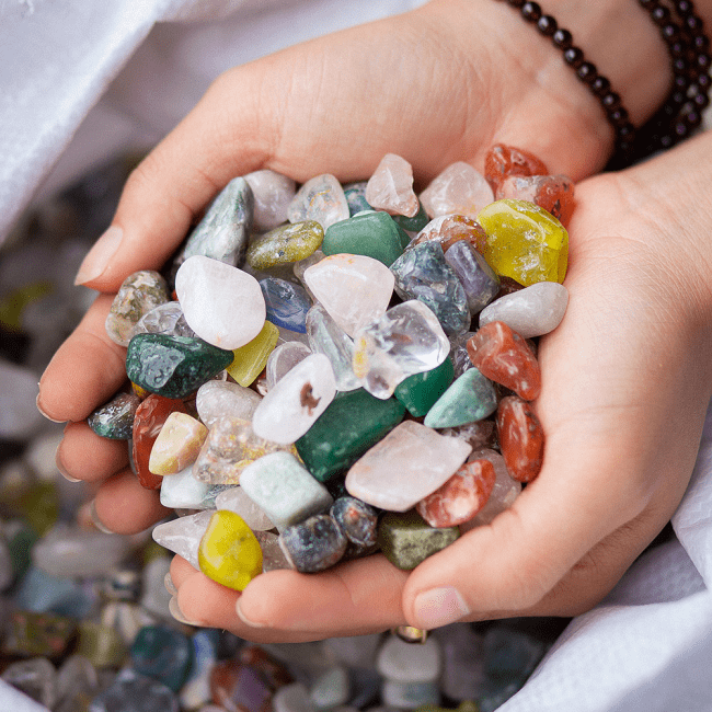 Trong quá trình chế tác, đục đẽo những khối đá thạch anh lớn để làm thành vật phẩm phong thủy và trang sức, sẽ sản sinh ra những đá thạch anh vụn với kích thước không đều nhau. Những đá vụn thạch anh này vẫn có đầy đủ các màu sắc như khối đá lớn: màu hồng, trắng, đen, vàng, tím, xanh,....