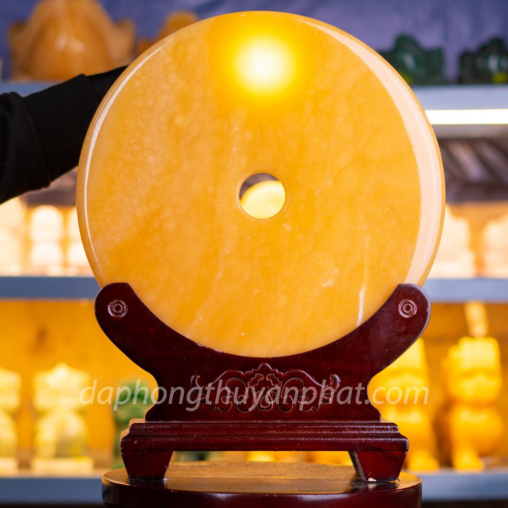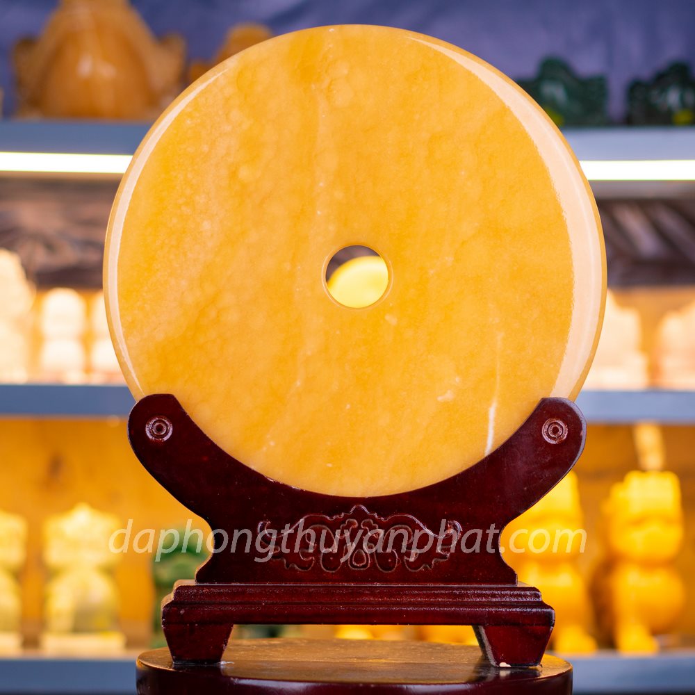 Đồng điếu đá hoàng long vàng có ý nghĩa cầu tài cầu lộc, đem đến may mắn và bình an cho gia chủ. Với kiểu dáng giống hình tiền xu, tượng trưng cho trời đất. Đem đến tiền tài thúc đẩy công việc, sự nghiệp kinh doanh cho gia chủ. Đặc biệt đồng điếu đá hoàng long vàng còn đem đến cho chủ nhân sức khỏe dồi dào.