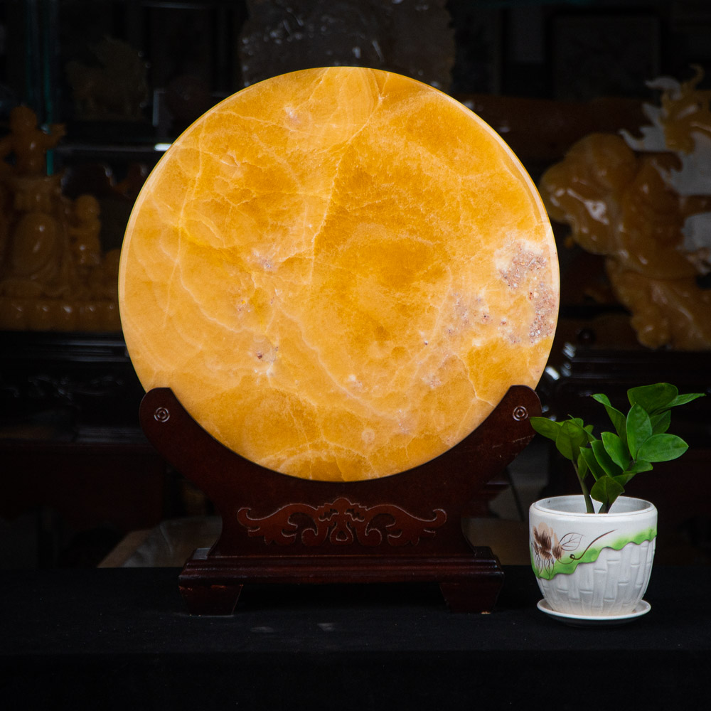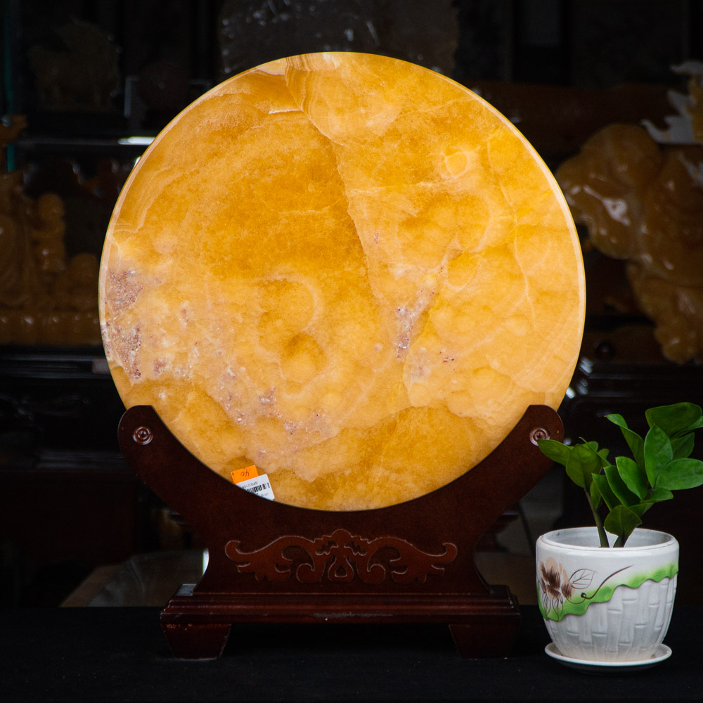 Tại An Phát đồng điếu được chế tác bằng ngọc Onyx vàng vô cùng đẹp. Ngoài ra còn có đế đi kèm sang trọng + các giấy tờ chứng nhận đá quý của viện đá quý quốc gia đi kèm.