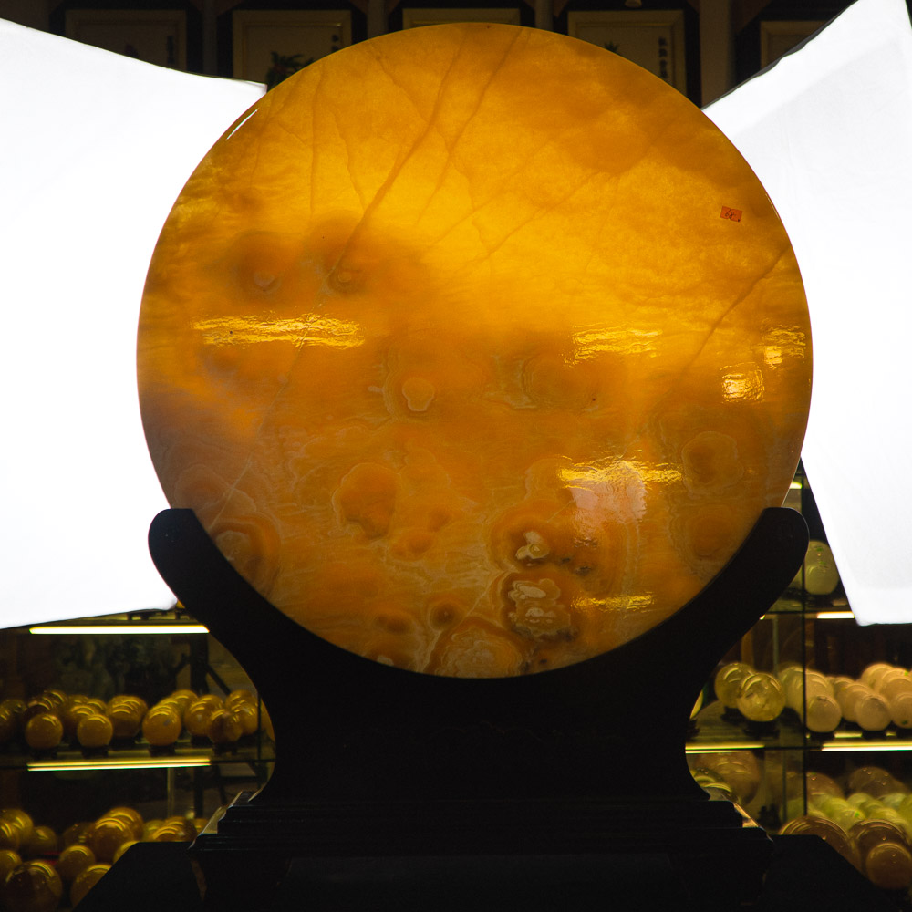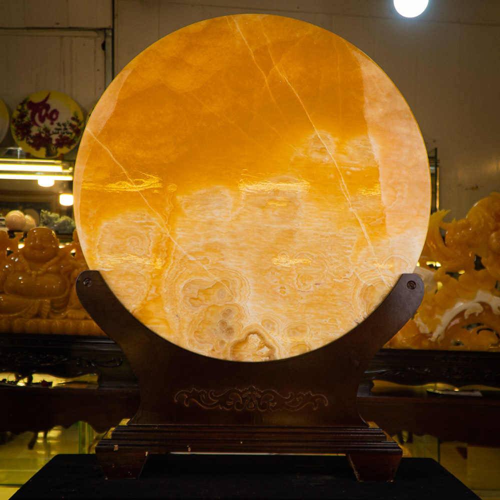 Tại An Phát đồng điếu được chế tác bằng ngọc Onyx vàng vô cùng đẹp. Ngoài ra còn có đế đi kèm sang trọng + các giấy tờ chứng nhận đá quý của viện đá quý quốc gia đi kèm.