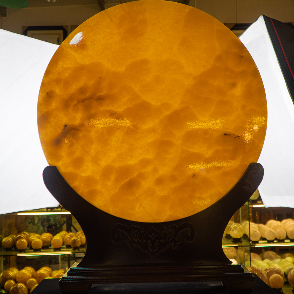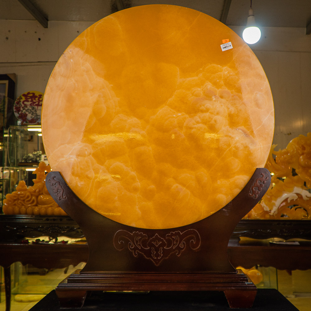 Tại An Phát đồng điếu được chế tác bằng ngọc Onyx vàng vô cùng đẹp. Ngoài ra còn có đế đi kèm sang trọng + các giấy tờ chứng nhận đá quý của viện đá quý quốc gia đi kèm.
