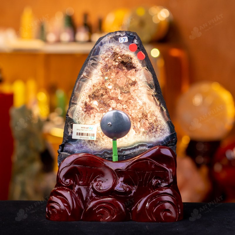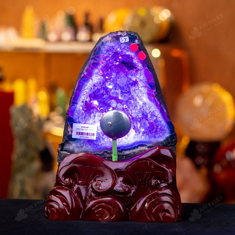 - Trọn bộ sản phẩm bao gồm: hốc thạch anh + 01 đế gỗ + đèn 7 màu + dầu dưỡng đá + thiệp + giấy kiểm định chất lượng đá