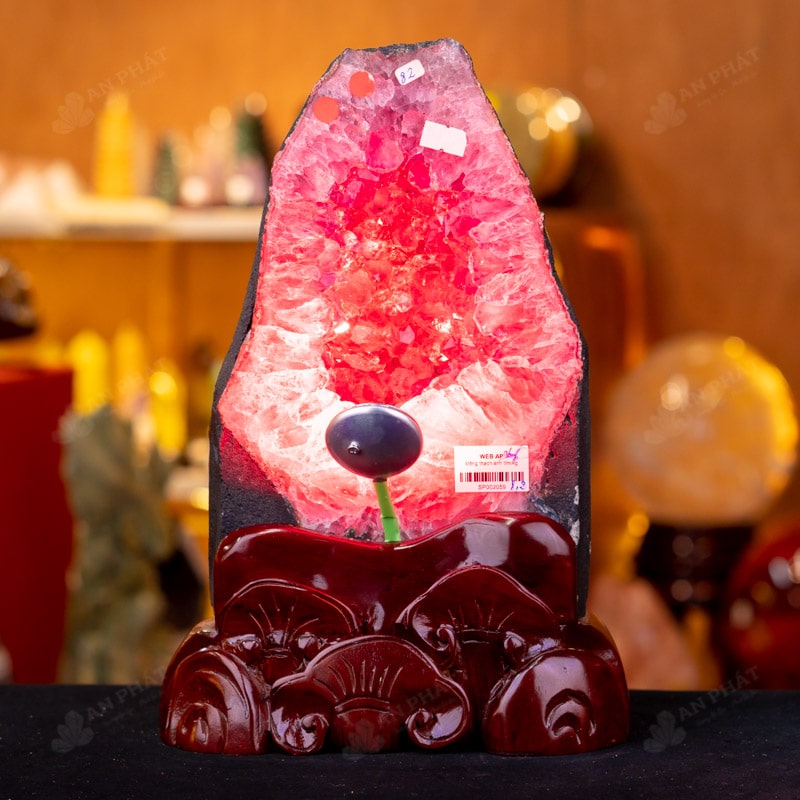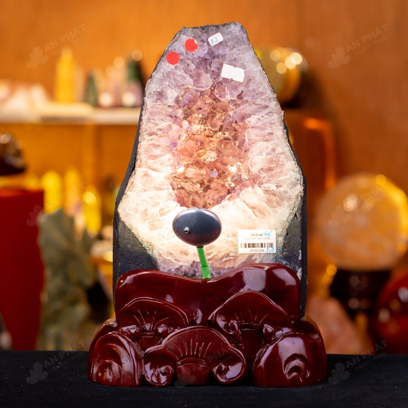 - Trọn bộ sản phẩm bao gồm: hốc thạch anh + 01 đế gỗ + đèn 7 màu + dầu dưỡng đá + thiệp + giấy kiểm định chất lượng đá