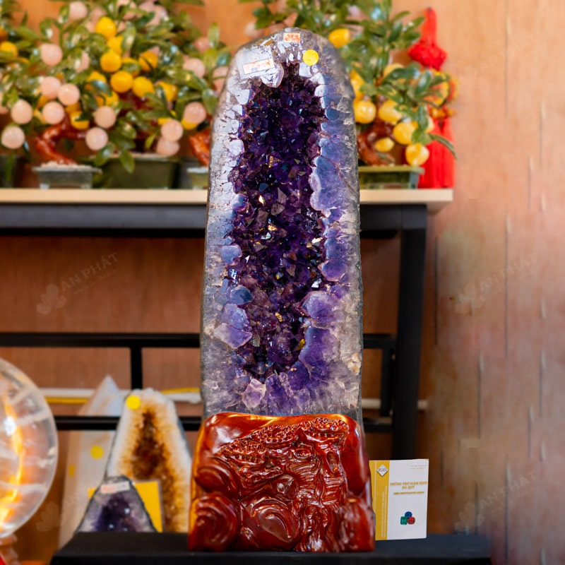 - Trọn bộ sản phẩm bao gồm: hốc thạch anh + 01 đế gỗ + đèn 7 màu + dầu dưỡng đá + thiệp + giấy kiểm định chất lượng đá