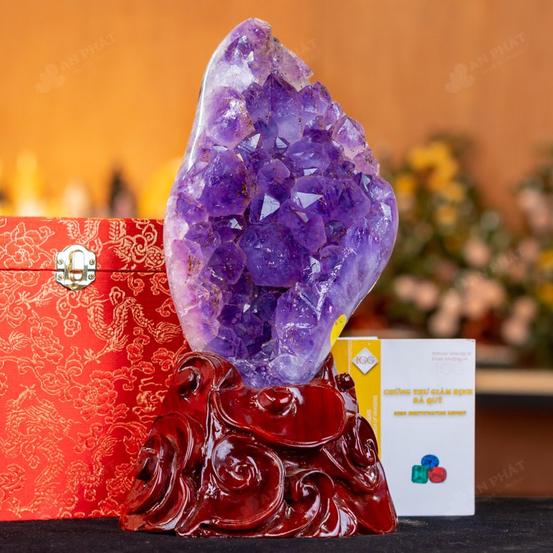 - Trọn bộ sản phẩm bao gồm: hốc thạch anh + 01 đế gỗ + hộp nhung sang trọng + túi giấy sang trọng + dầu dưỡng đá + thiệp + giấy kiểm định chất lượng đá